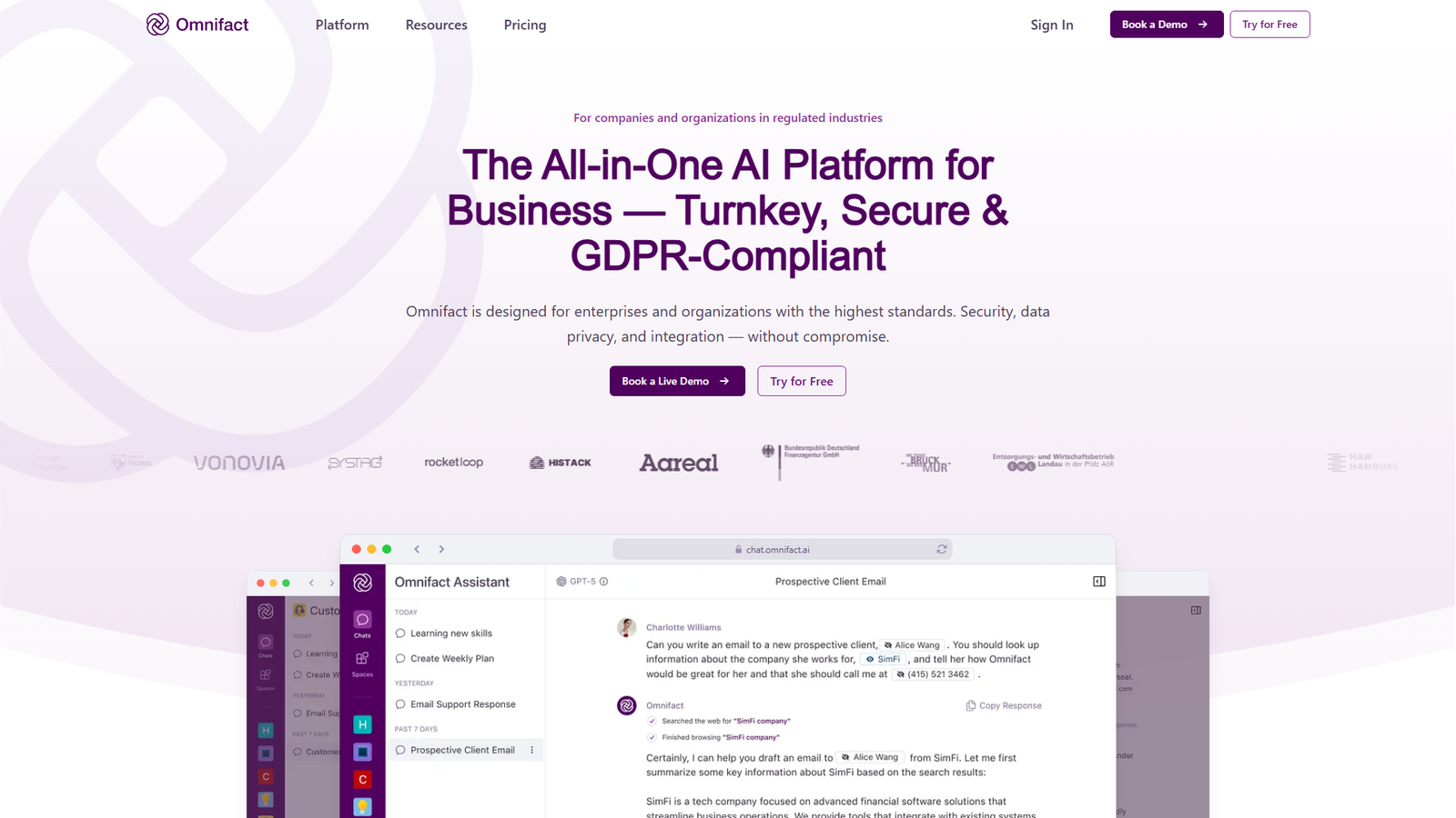 Omnifact — это корпоративная платформа генеративного ИИ с приоритетом конфиденциальности, созданная специально для бизнеса и регулируемых отраслей. Сервис позволяет использовать современные модели ИИ, не жертвуя безопасностью и контролем над данными.