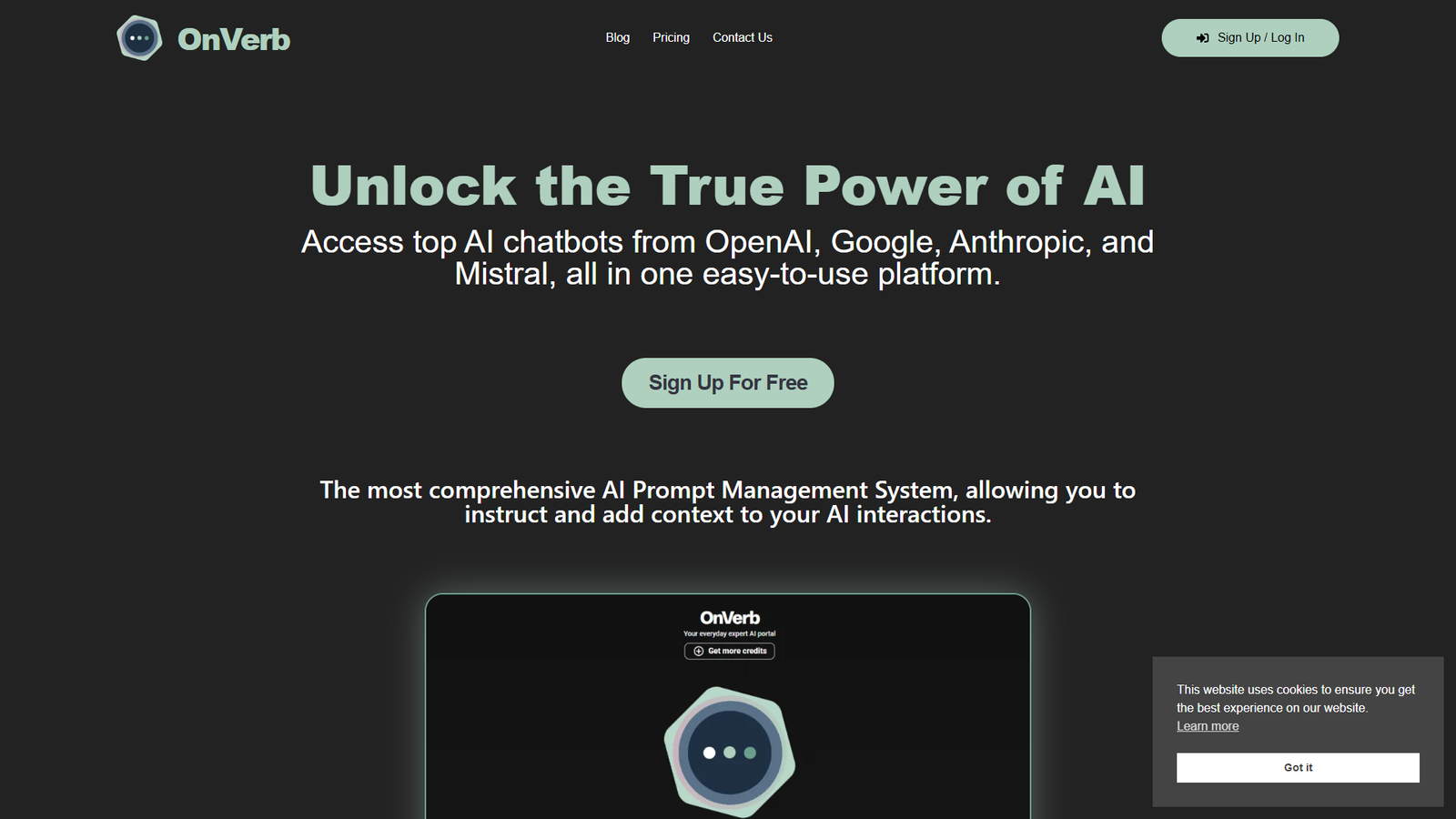 OnVerb объединяет в одном интерфейсе ведущие AI‑чатботы от OpenAI, Google, Anthropic и Mistral. Пользователь переключается между моделями без сложных настроек и ручного управления несколькими аккаунтами.