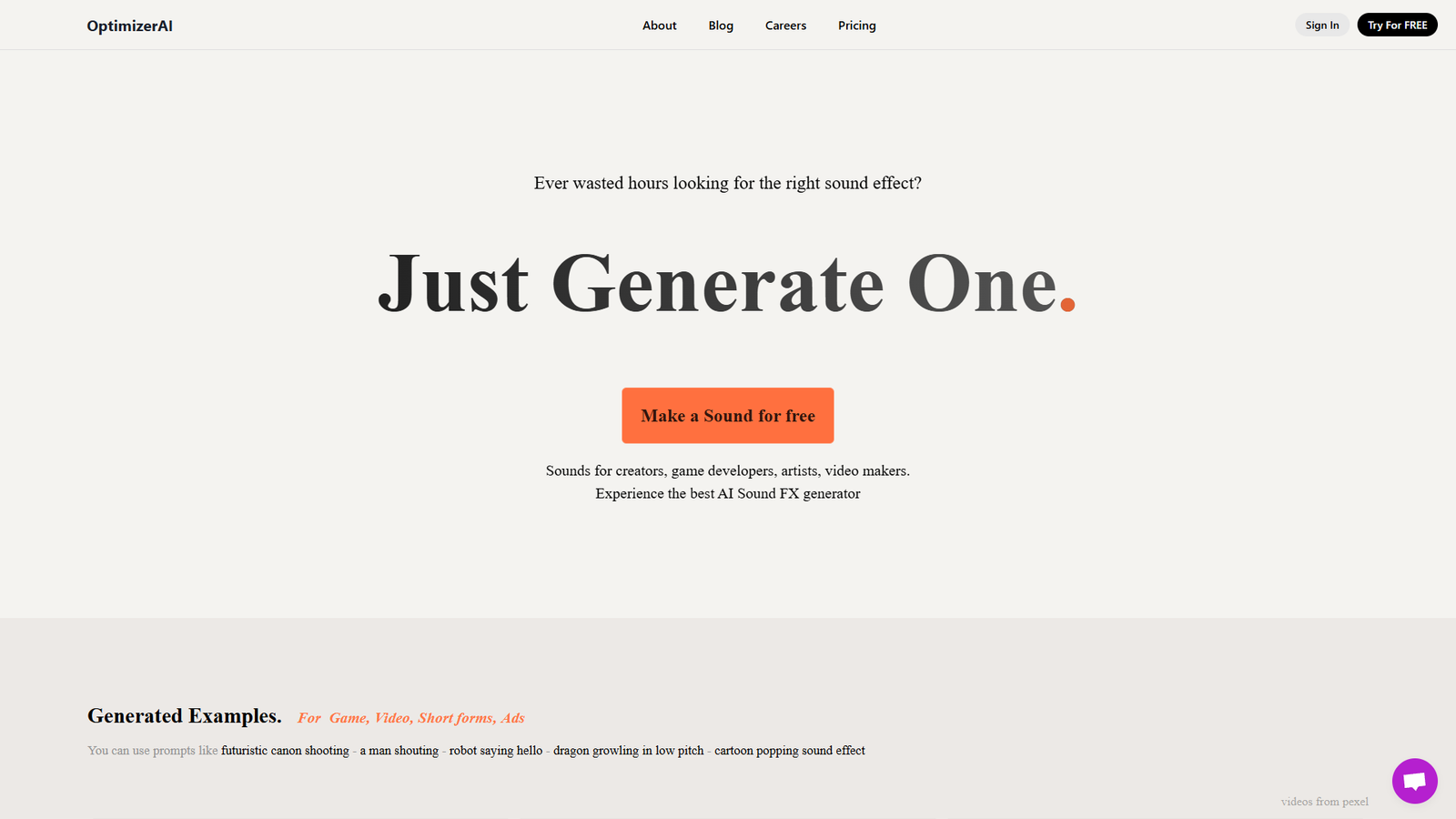 OptimizerAI генерирует звуковые эффекты с нуля по текстовому описанию. Вместо долгого поиска по стоковым библиотекам пользователь вводит промт и получает уникальный звук под задачу.
