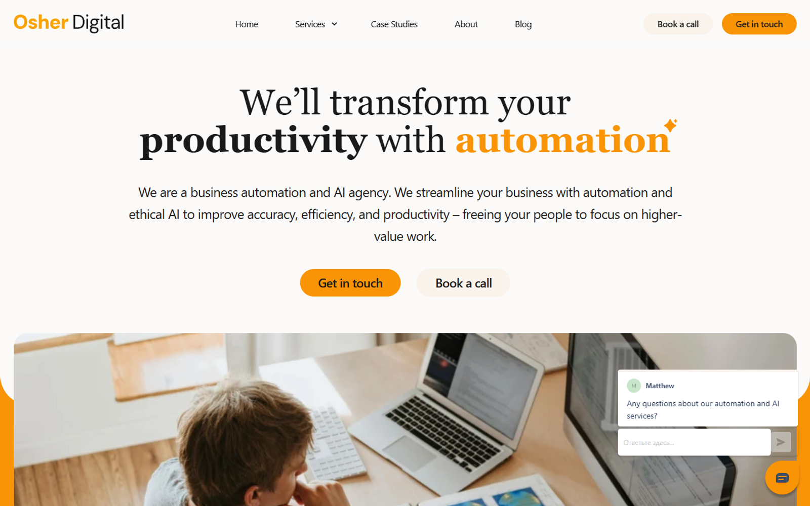 Osher Digital — агентство по бизнес-автоматизации и внедрению ИИ, которое помогает компаниям повышать продуктивность и масштабируемость за счёт ответственного использования технологий.