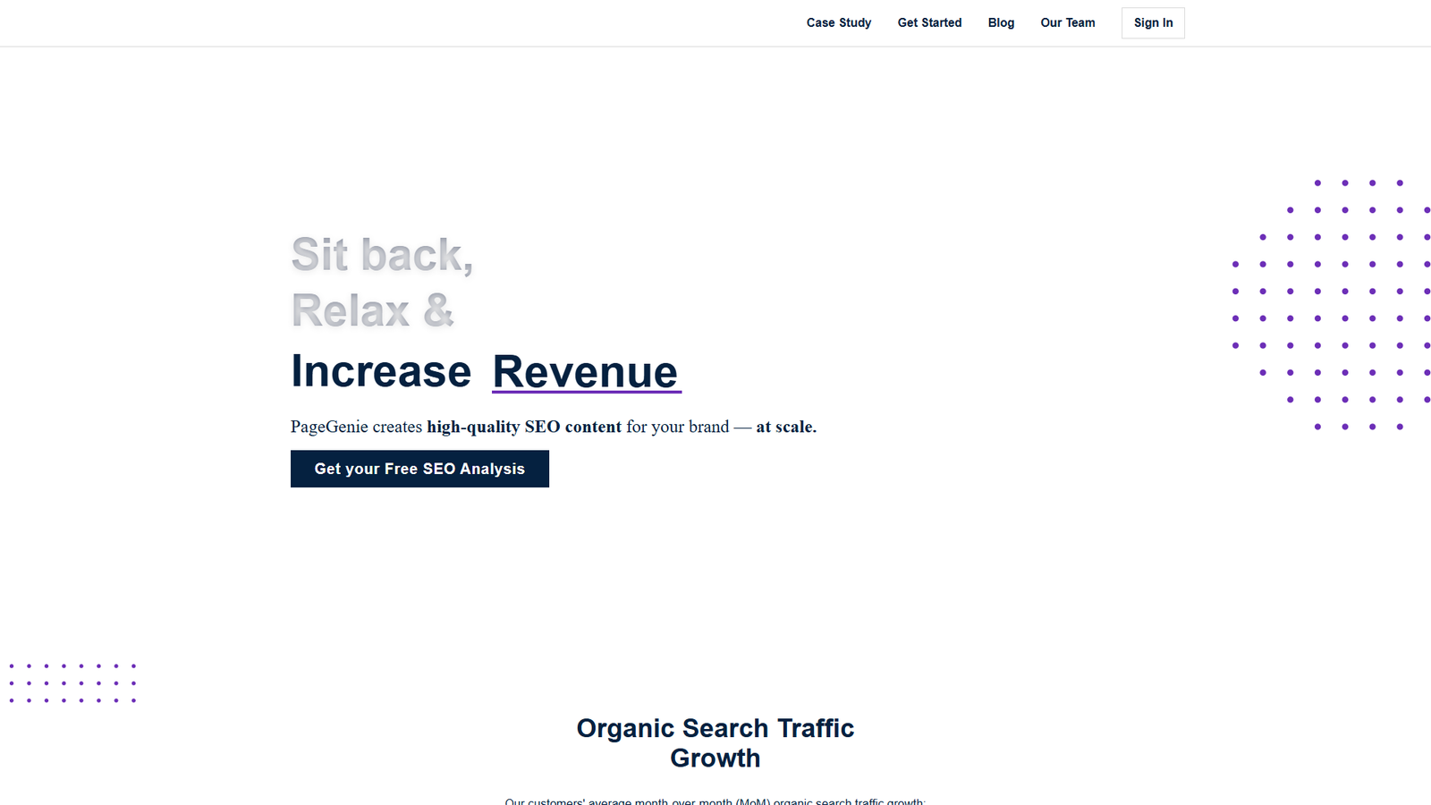 PageGenie — это AI-сервис, который превращает ваш промт в полноценный лендинг и SEO-страницы для роста органического трафика. Платформа ориентирована на e-commerce и локальные сервисные бренды, помогая им системно масштабировать контент и увеличивать конверсии из поиска.