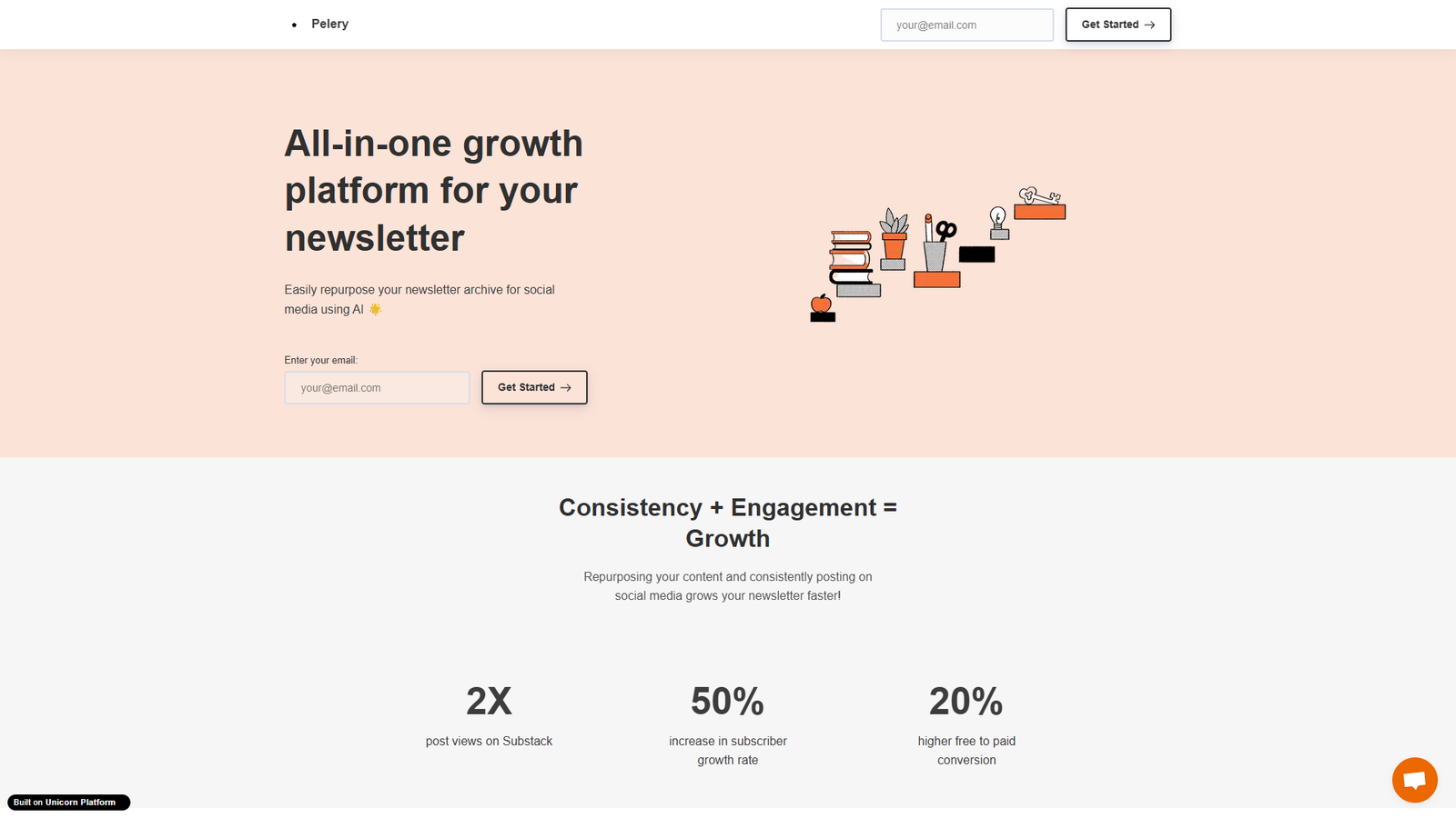 Pelery — это AI-платформа роста для авторов рассылок, которая помогает превращать ваши письма в готовый контент для соцсетей за считанные секунды. Сервис особенно удобен для пользователей Substack: достаточно вставить ссылку на вашу рассылку, и Pelery автоматически подтянет все опубликованные посты.