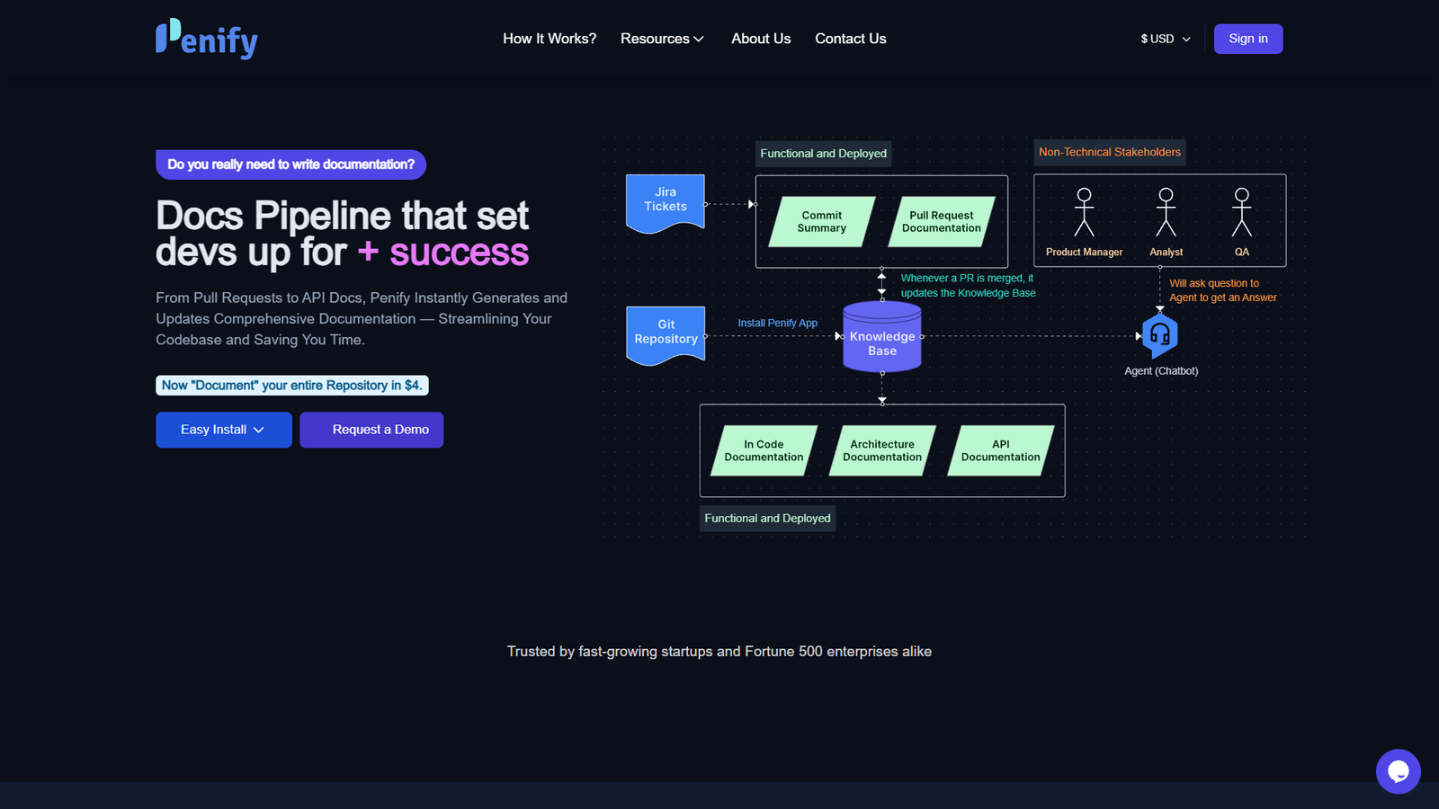 Penify — это автоматизированный конвейер документации, который берёт на себя рутину по написанию и обновлению докстрингов и технической документации прямо в вашем репозитории.