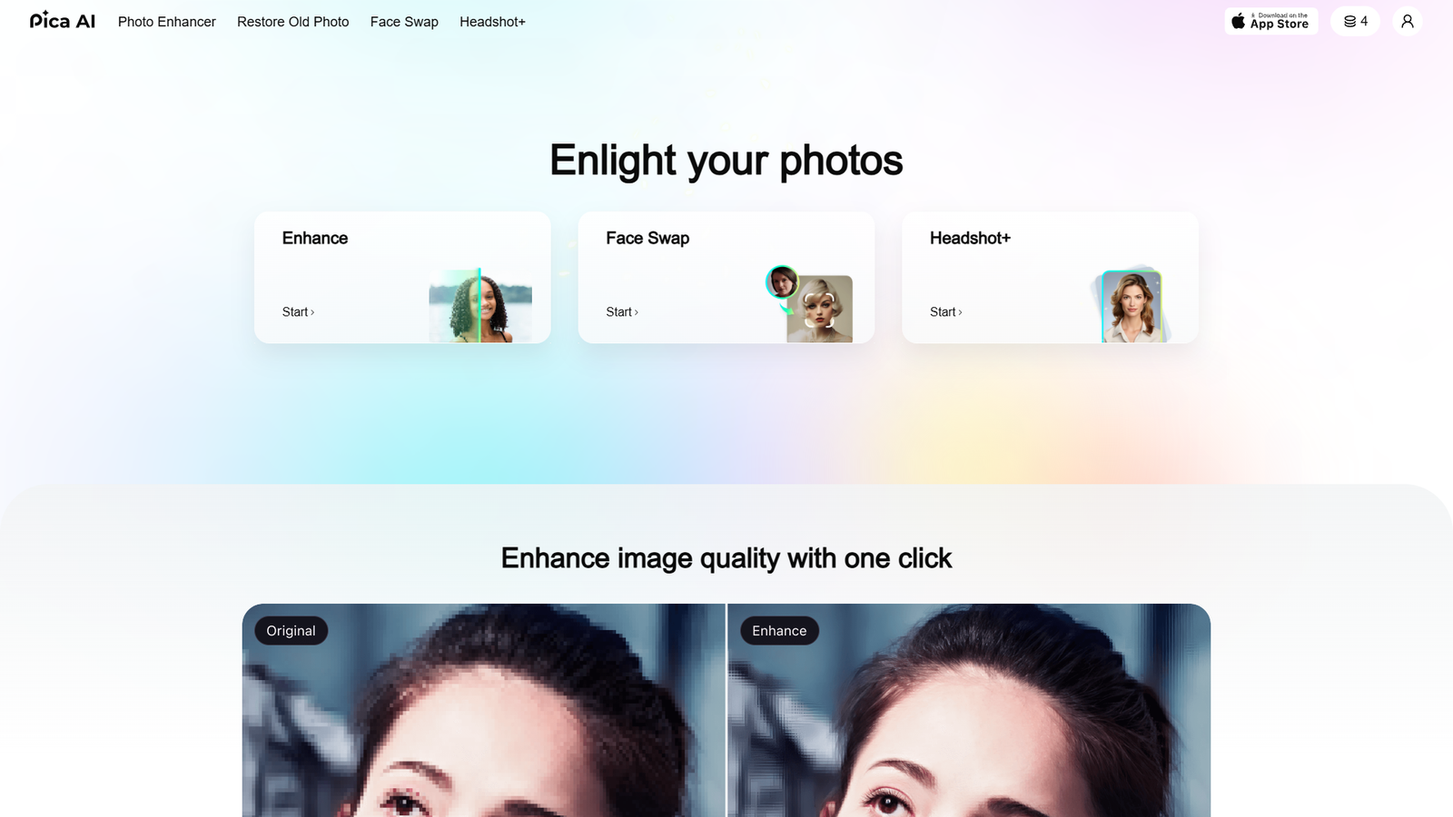 Pica AI — онлайн-сервис для быстрого улучшения фотографий с помощью ИИ: повышайте качество изображения в один клик, восстанавливайте старые снимки и создавайте эффектные портреты.