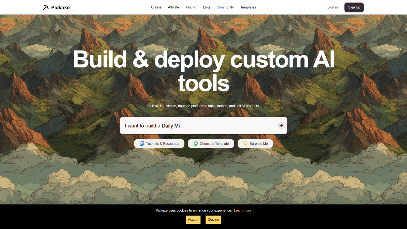 Pickaxe поддерживает интеграции и встраивание AI-инструментов в сайты, продукты и внутренние системы. Это делает сервис подходящим как для одиночных создателей, так и для бизнеса, который хочет масштабировать использование ИИ внутри и вне компании.