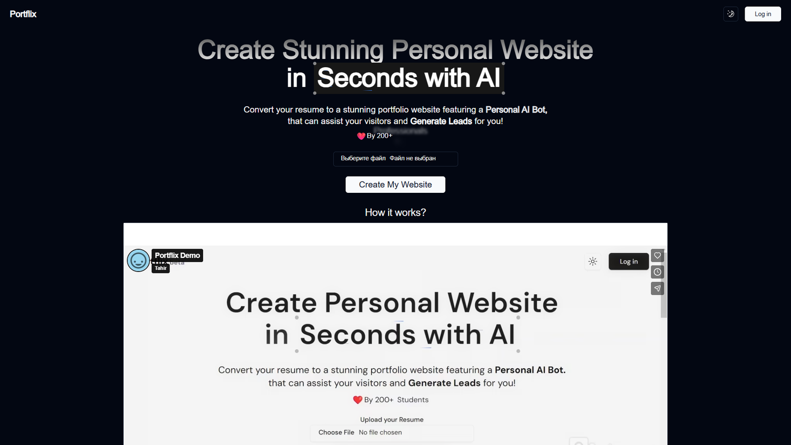 Portflix — это AI-сервис, который за считанные секунды превращает ваше резюме в современный персональный сайт-портфолио. Достаточно загрузить CV, и платформа автоматически создаст стильную страницу с вашим опытом, навыками и проектами.