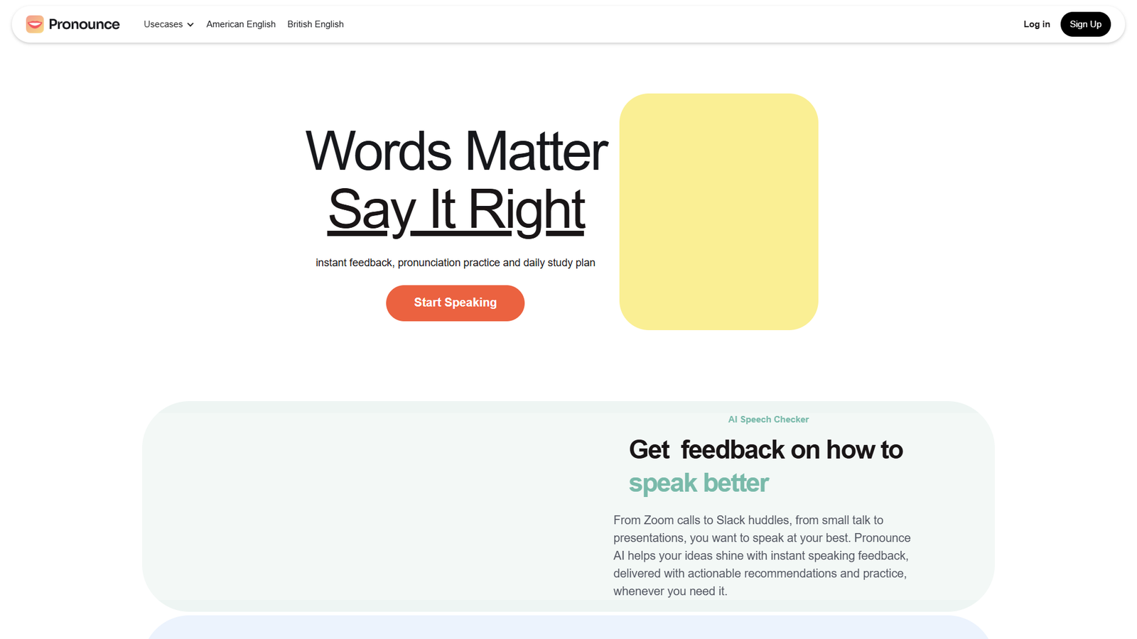 Сервис анализирует вашу речь по записи голоса и даёт мгновенную обратную связь: где вы ошиблись в звуках, ударениях или интонации. Вместо общих советов Pronounce предлагает конкретные рекомендации и упражнения, чтобы вы сразу понимали, что и как улучшать.