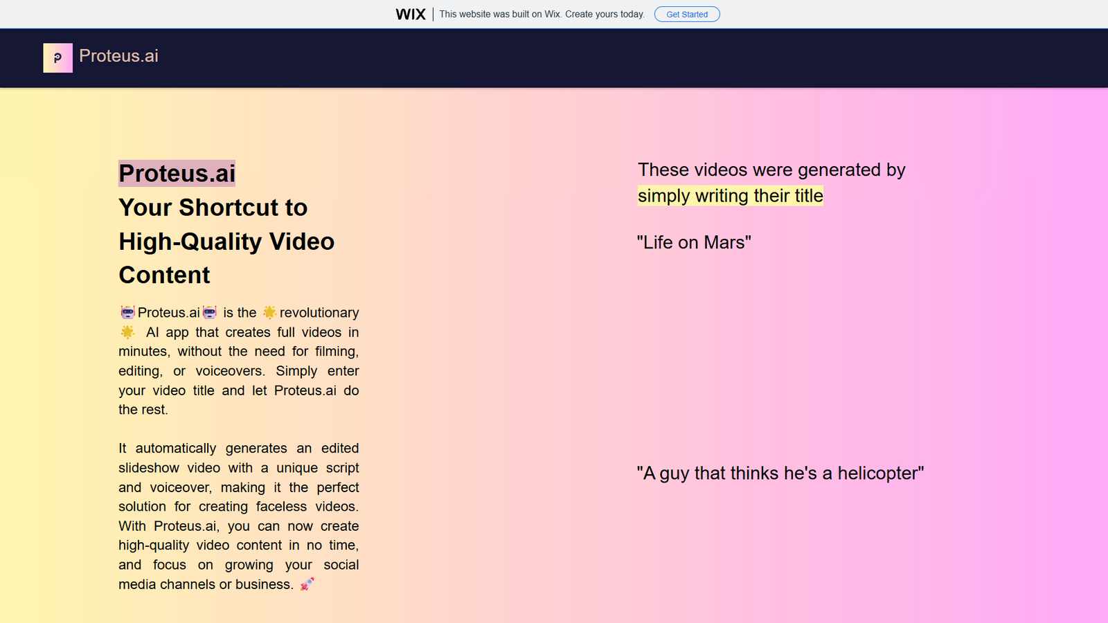 Proteus.ai — это ИИ-сервис, который превращает простой текстовый запрос в полноценное видео за считанные минуты. Вам не нужно ничего снимать, монтировать или записывать голос — достаточно ввести название или тему ролика, а остальное платформа сделает автоматически.