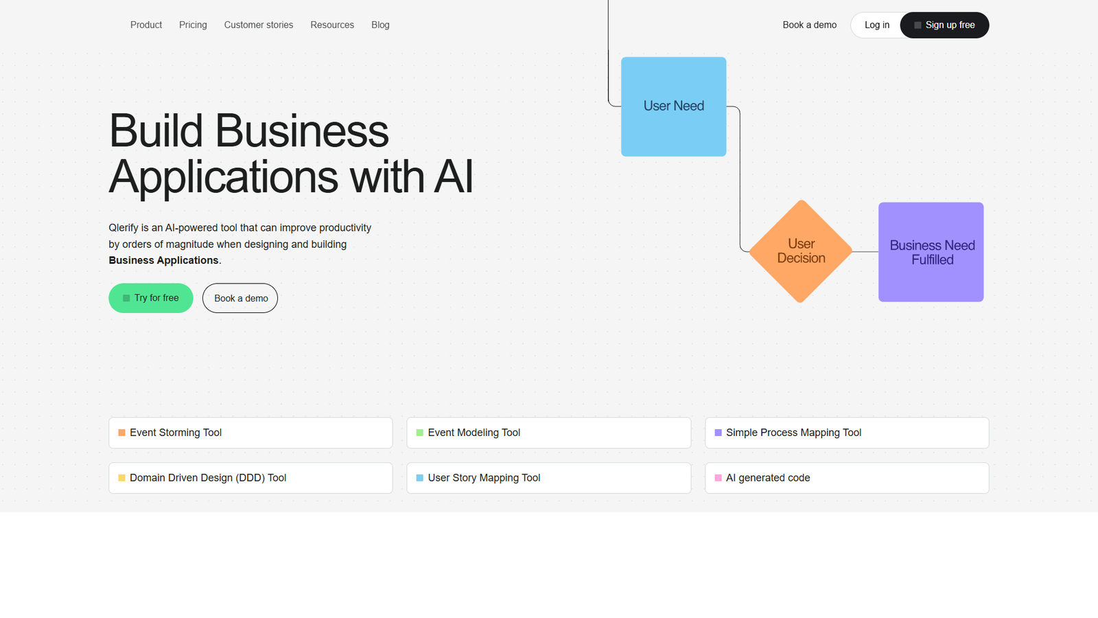 Qlerify — это AI-платформа для моделирования бизнес-процессов и проектирования программных систем, которая ускоряет цифровую трансформацию и разработку бизнес-приложений.
