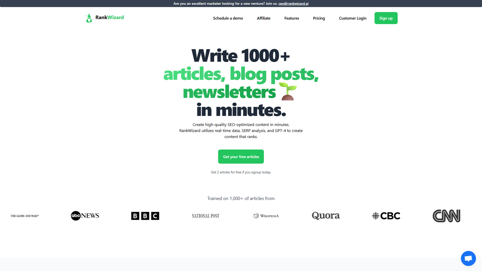 RankWizard — это AI-платформа для массовой генерации SEO-оптимизированных статей, блог-постов и email-рассылок за считанные минуты. Сервис сочетает GPT-4, анализ поисковой выдачи (SERP) и работу с актуальными данными, чтобы создавать контент, который действительно ранжируется в поиске.
