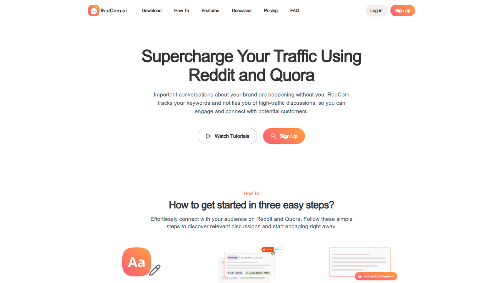 RedCom помогает отслеживать обсуждения о бренде и продуктах на Reddit и Quora. Сервис концентрируется на поиске тем с высоким трафиком, где уже присутствуют ваши ключевые слова и потенциальные клиенты.