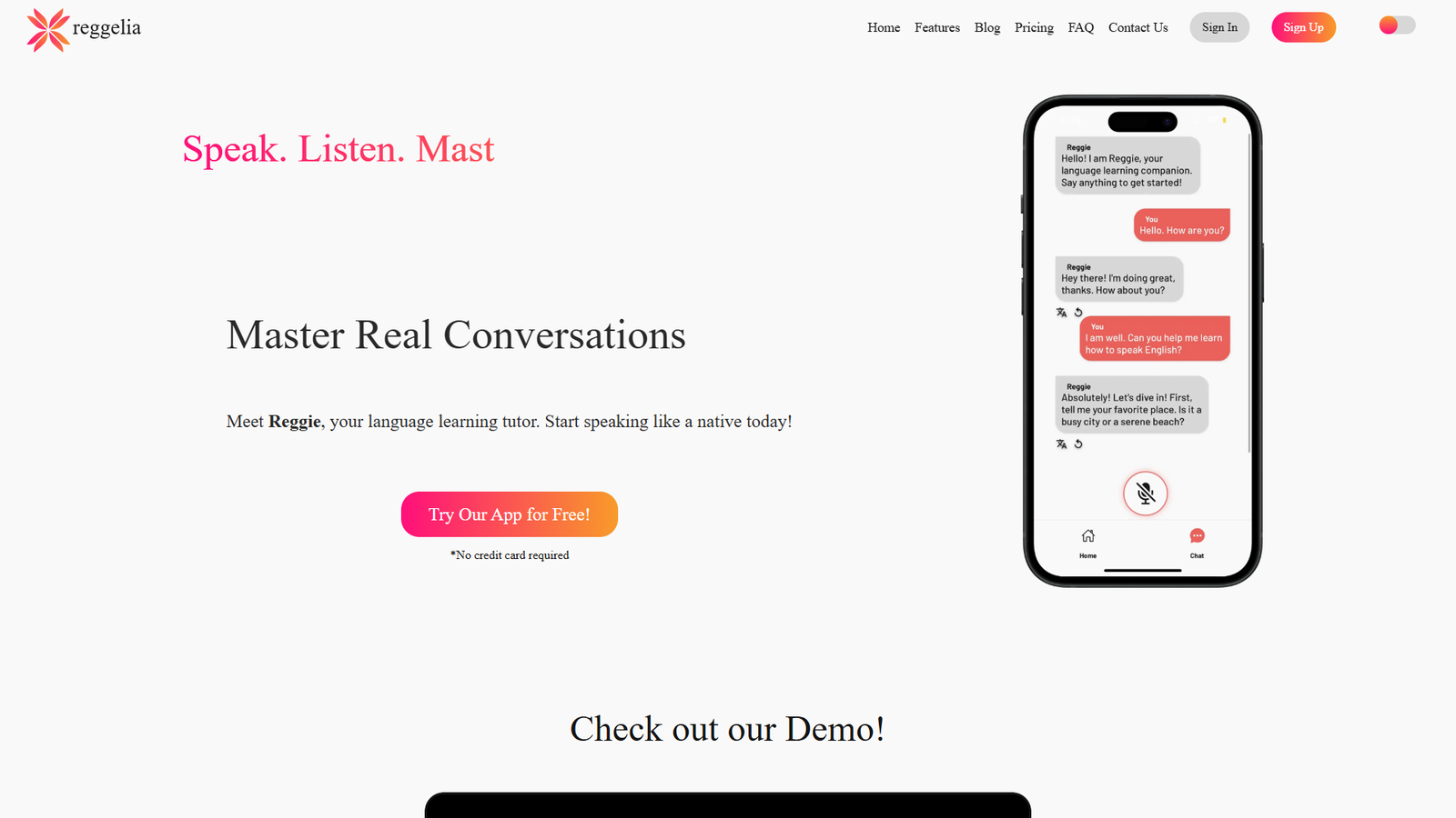 Пользователь говорит с Reggie голосом, а нейросеть отслеживает произношение и сразу указывает на ошибки. Исправления приходят в живом формате: можно повторить фразу, услышать образец и постепенно приблизиться к звучанию носителя языка.