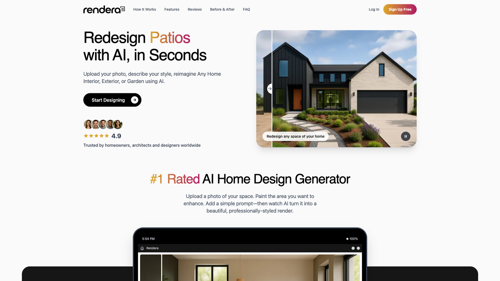 Rendera — инструмент на базе ИИ для быстрого переосмысления интерьеров, экстерьеров и садов по одной фотографии. Пользователь загружает снимок, выделяет нужную зону и описывает желаемый стиль. Нейросеть создает визуализацию, похожую на профессиональный дизайн-проект.