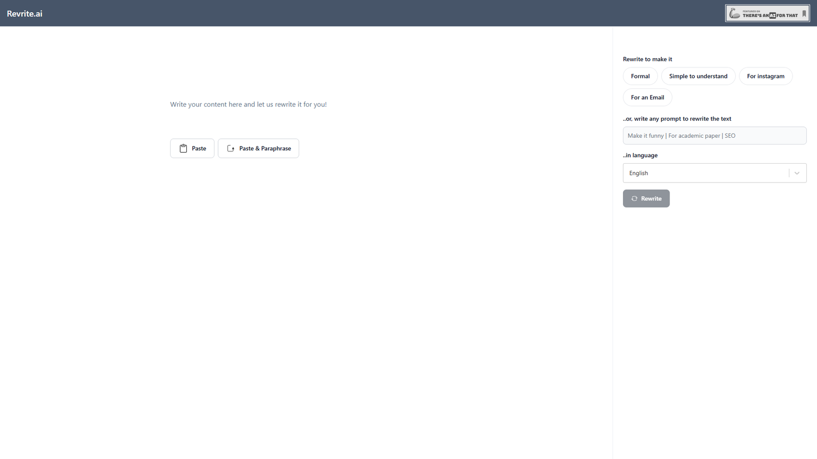 revrite.ai — это онлайн‑сервис перефразирования текста на базе искусственного интеллекта, который помогает сделать ваши сообщения более понятными, плавными и естественными. Сервис работает по freemium‑модели: базовые функции доступны бесплатно прямо в браузере, без установки программ.