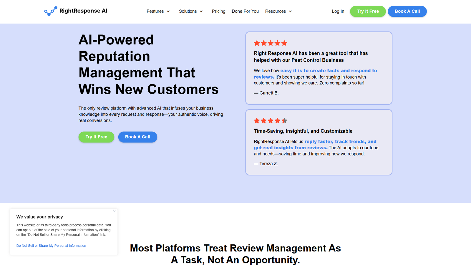 RightResponse AI помогает компаниям системно работать с репутацией и отзывами, используя нейросеть, обученную на данных самого бизнеса. В каждое обращение к клиенту и каждый ответ на отзыв добавляются проверенные факты о бренде, услугах и преимуществах.
