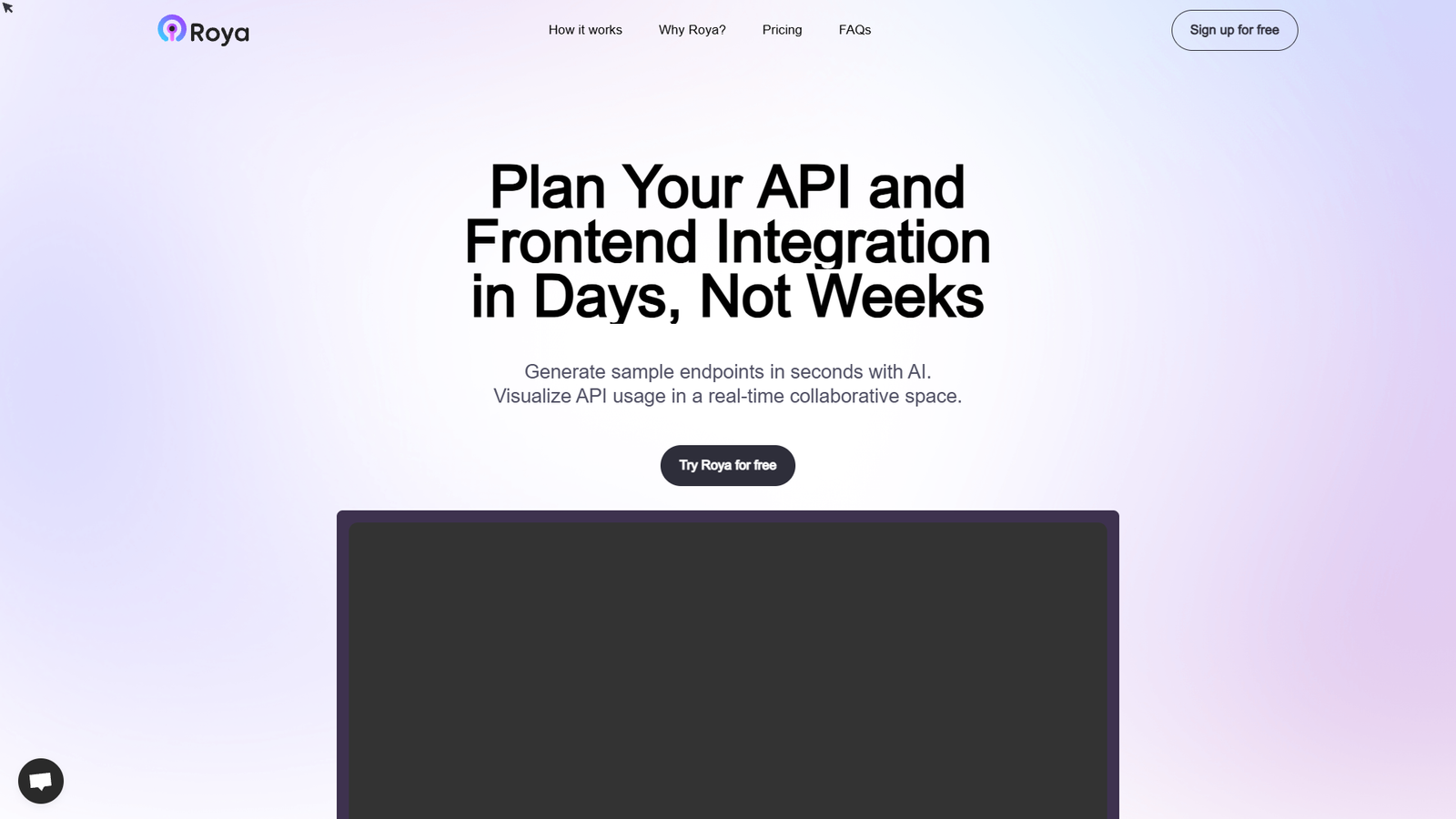 Roya — это AI-платформа для быстрого планирования API и фронтенд‑интеграций, которая помогает командам перейти от идеи к чёткой спецификации за дни, а не недели. Сервис генерирует примерные эндпоинты, тела запросов и ответов за секунды, избавляя разработчиков и продакт‑менеджеров от рутинного ручного описания.