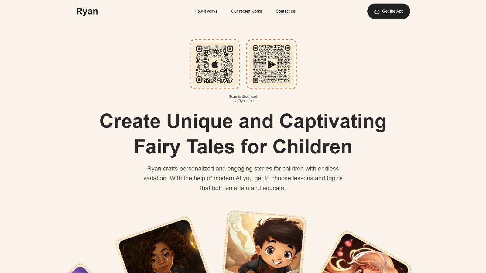 Ryan — это мобильное приложение на базе ИИ для создания уникальных и захватывающих сказок для детей. Сервис помогает родителям и педагогам придумывать истории, которые одновременно развлекают и обучают, подстраиваясь под возраст и интересы ребёнка.