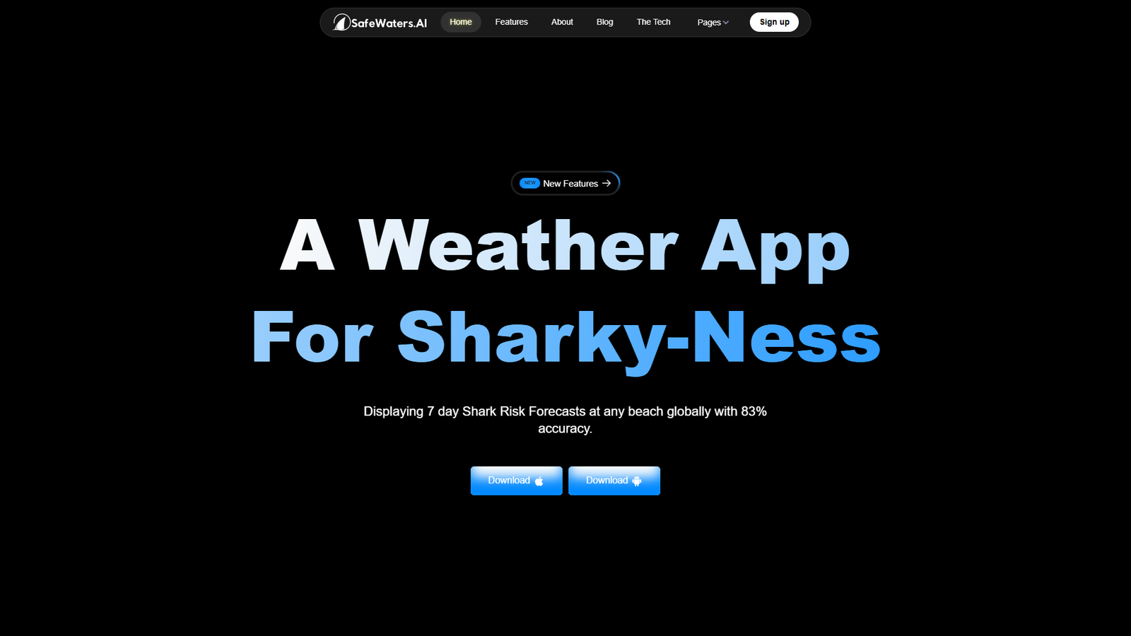 SafeWaters.ai — это «погодное приложение для акул»: сервис показывает прогноз риска нападения акул на ближайшие 7 дней для любого пляжа в мире. Идея проста — как вы проверяете погоду перед купанием, так же можно проверить и «sharky-ness» конкретной локации.