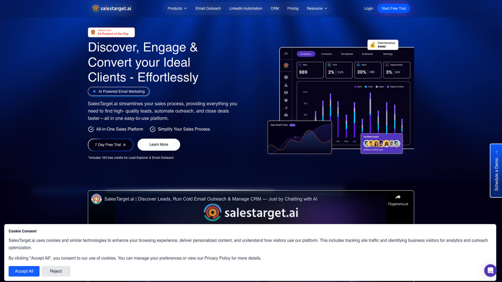 SalesTarget.ai объединяет поиск B2B-лидов, холодные email-кампании и CRM в одном рабочем пространстве. Инструмент опирается на ИИ, чтобы ускорить цикл сделки: от обнаружения целевых компаний до автоматизации касаний и фиксации результатов в воронке.