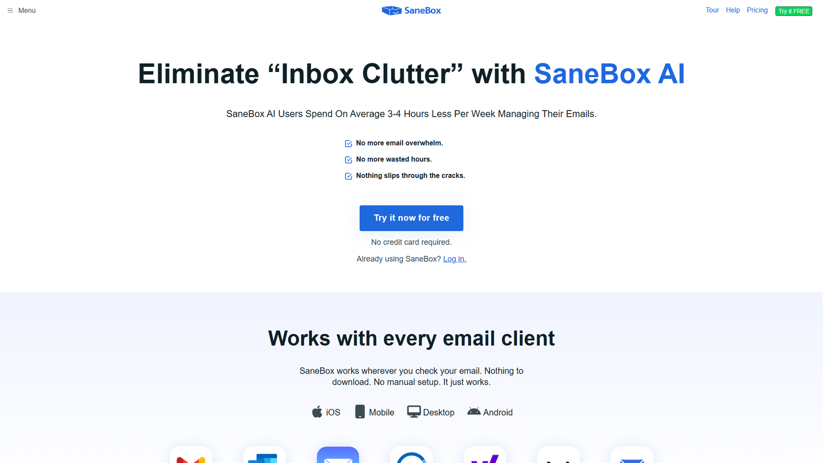 SaneBox — это умный AI-сервис для управления электронной почтой, который помогает навести порядок в любом почтовом ящике и сократить время работы с письмами на часы каждую неделю.
