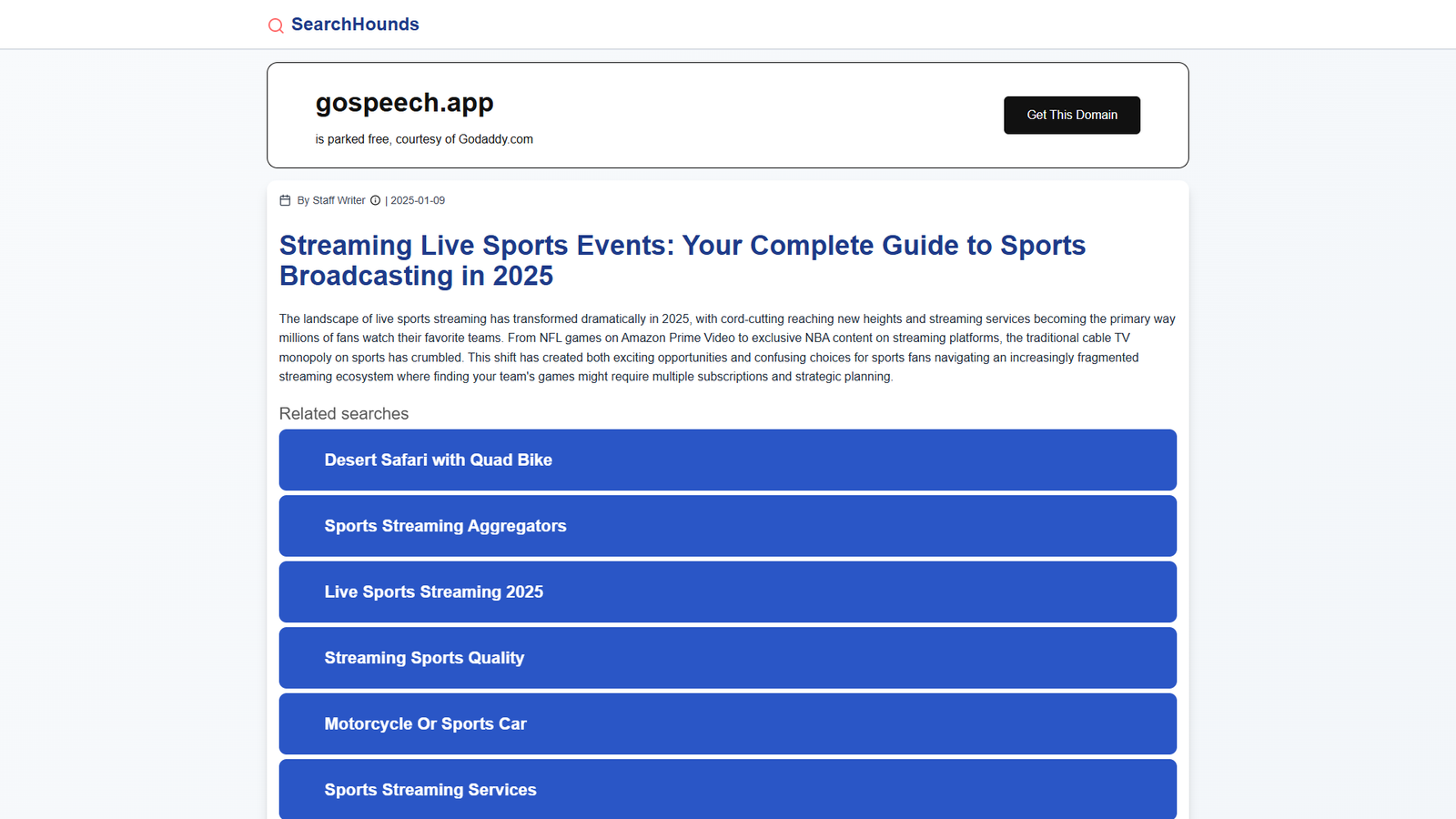 SearchHounds — это онлайн-гид по миру спортивных трансляций и стриминговых сервисов, который помогает болельщикам ориентироваться в быстро меняющемся ландшафте спортивного вещания в 2025 году.