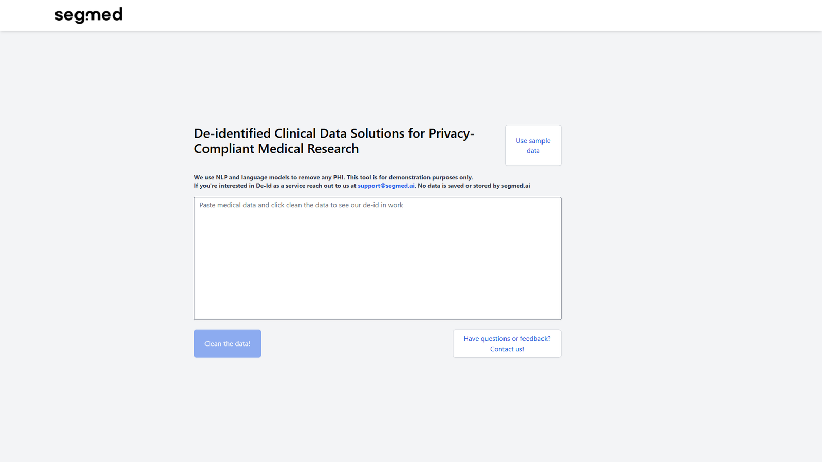 Segmed De-ID — это онлайн-инструмент для безопасной деидентификации медицинских данных, созданный для исследователей, клиник и компаний, работающих с клинической информацией. Сервис демонстрирует, как современные NLP‑модели и языковые модели могут автоматически удалять персональные данные (PHI) из текстов.
