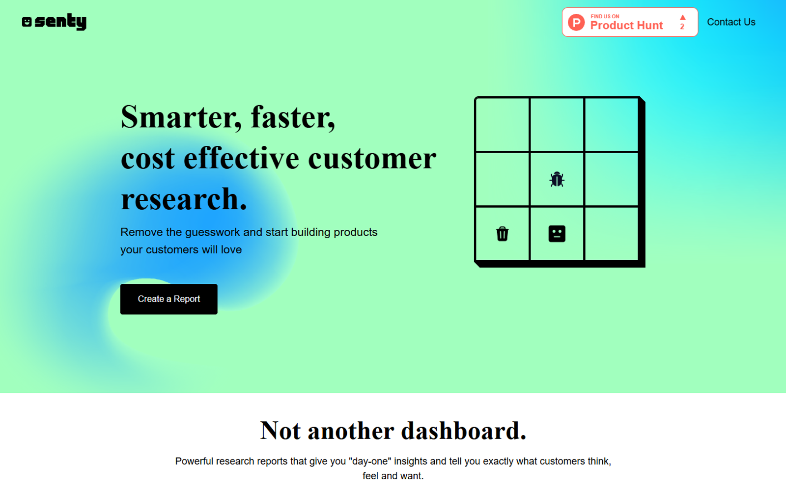 Senty Research автоматизирует пользовательские исследования для цифровых продуктов. Инструмент собирает данные о поведении и отзывах клиентов, а затем с помощью ИИ формирует структурированные отчёты с готовыми выводами.
