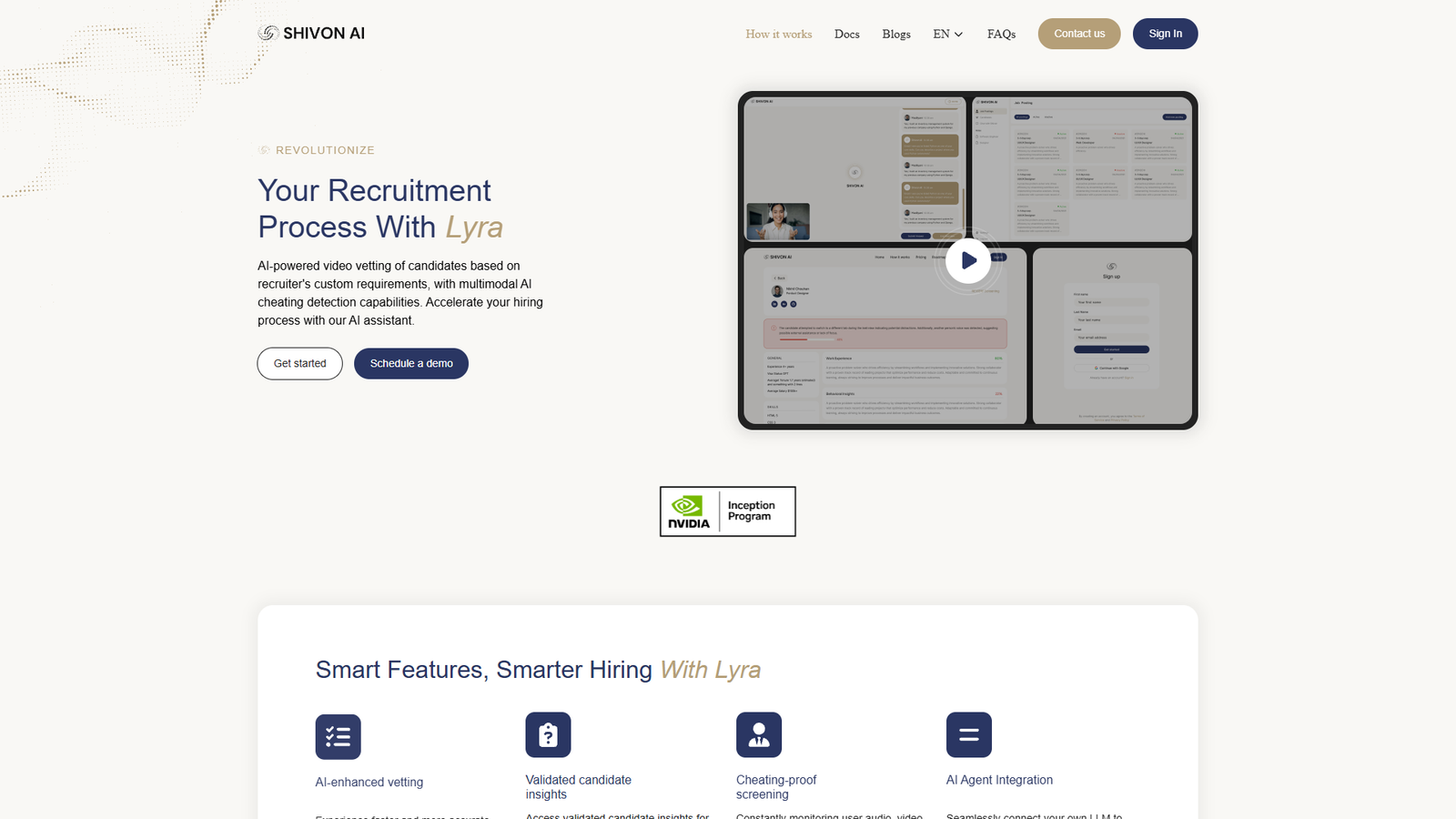 Shivon AI — это система для предварительного отбора кандидатов по видео с помощью ИИ-ассистента Lyra. Решение ориентировано на рекрутеров и HR-команды, которым важно ускорить найм и снизить нагрузку на ручной скрининг.