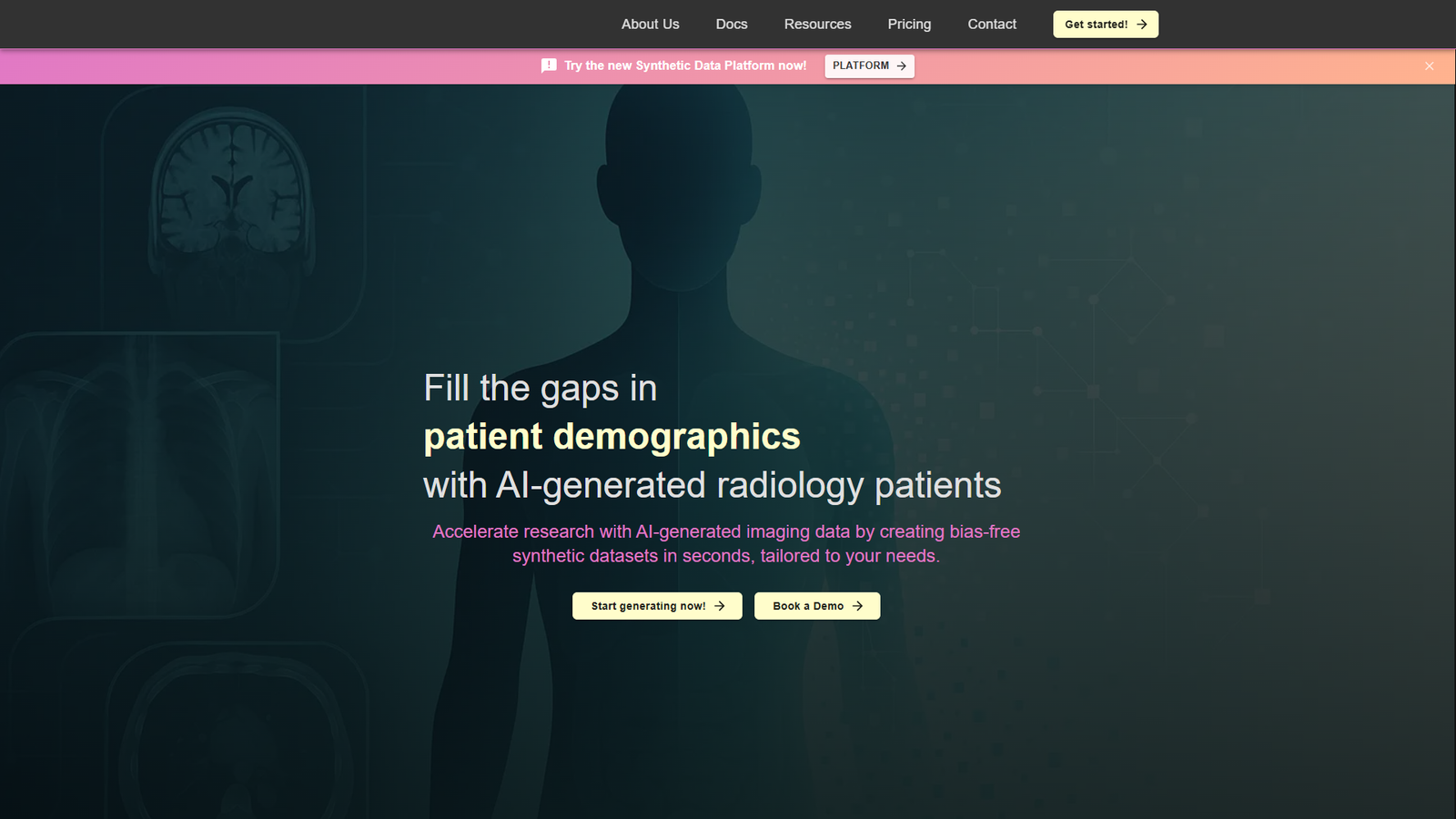 Sinkove — это платформа синтетических медицинских изображений, которая использует генеративный ИИ для создания высококачественных радиологических и биомедицинских данных. Сервис помогает исследователям и разработчикам медицинских ИИ-моделей преодолеть дефицит разнообразных и репрезентативных датасетов.