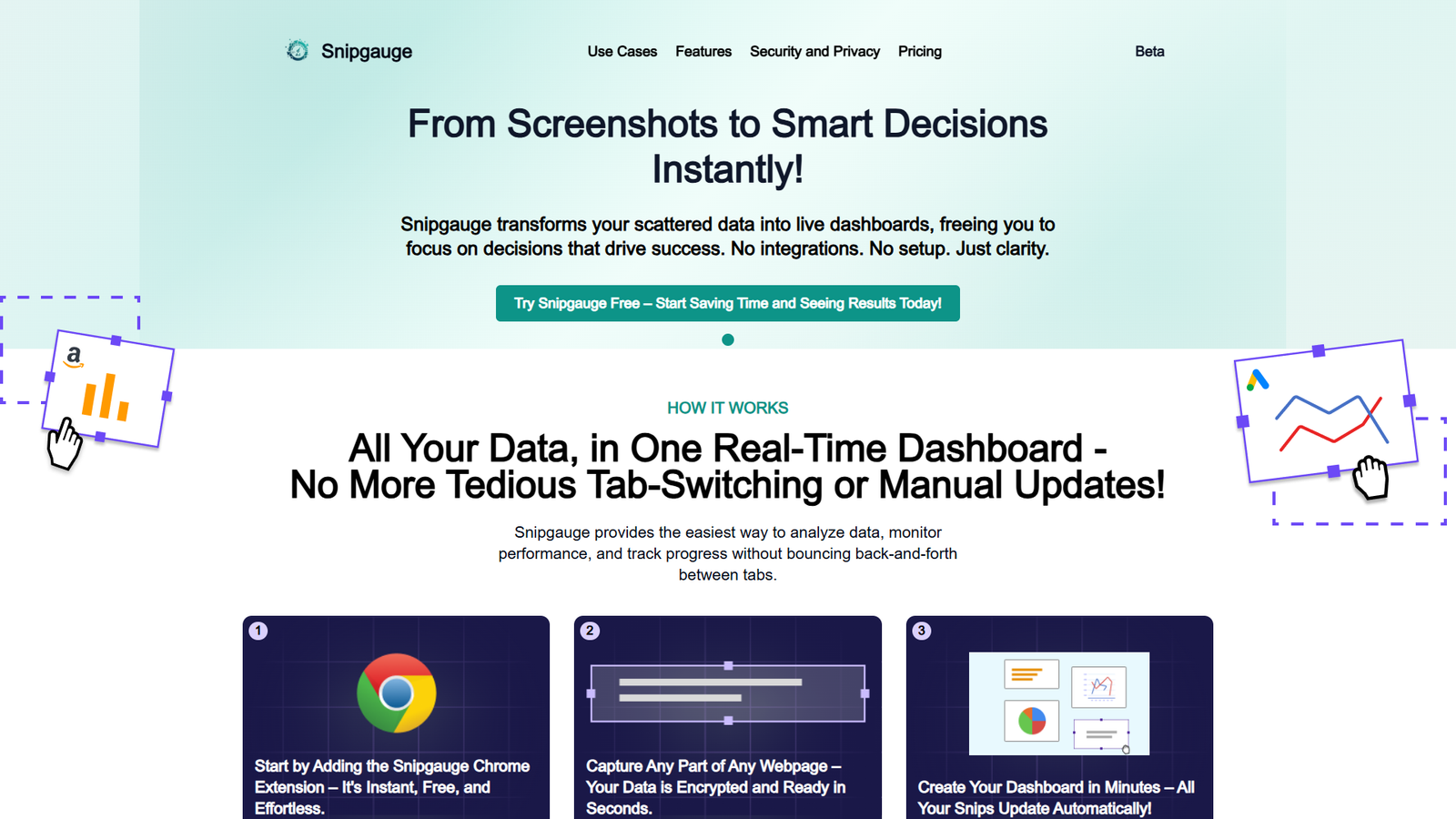 Snipgauge превращает обычные скриншоты в живые дашборды. Данные из разных систем больше не нужно вручную сводить в таблицы и презентации — достаточно сделать снимок экрана и загрузить его.