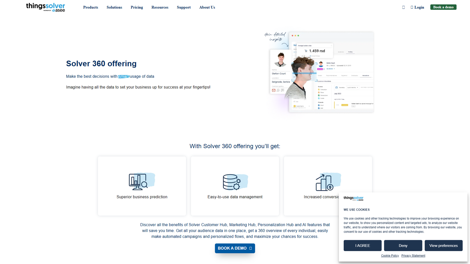 Solver 360 — это комплексное AI-решение для бизнеса, которое помогает принимать более точные и быстрые решения на основе данных. Платформа объединяет в одном месте все ключевые источники информации о вашей аудитории и бизнес-процессах, создавая по-настоящему 360-градусный обзор.
