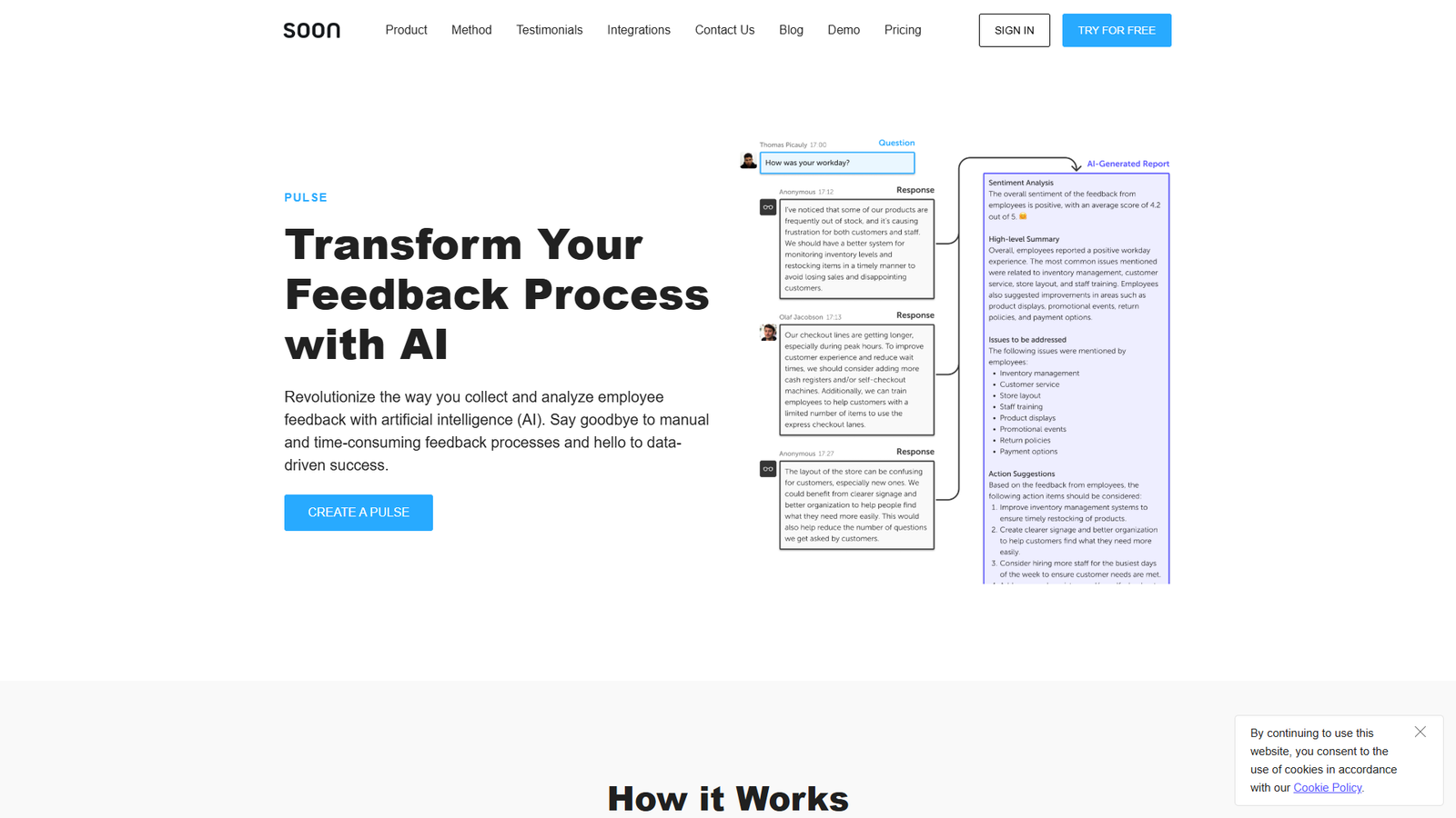 Soon Pulse — AI-инструмент для 360°-оценки и регулярного сбора обратной связи о работе команды. Сервис помогает заменить ручные опросы и разрозненные комментарии на понятную, измеримую картину происходящего.