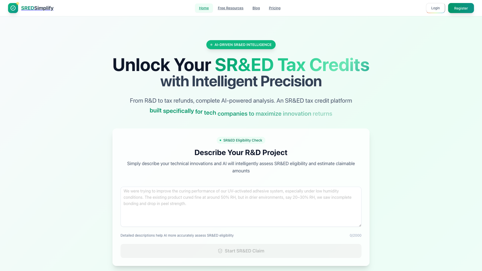 SREDSimplify помогает технологическим компаниям оформлять налоговые кредиты по программе SR&ED с опорой на ИИ. Сервис анализирует документацию по исследованиям и разработкам и переводит техническое описание в структурированные данные для налоговой отчетности.