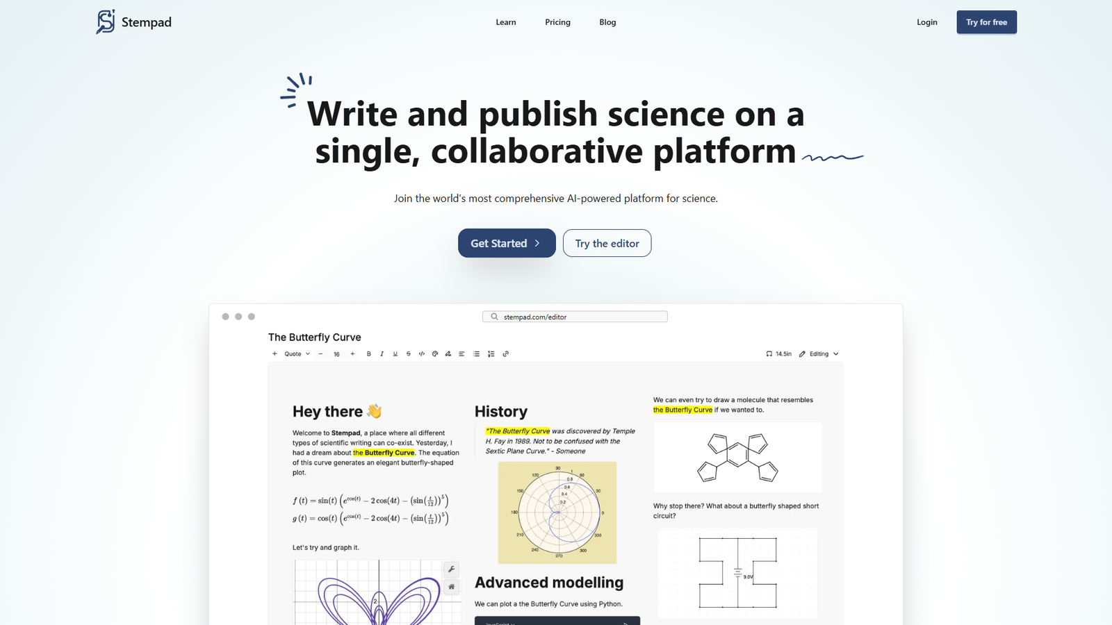 Stempad — онлайн-редактор для научных заметок и статей, работающий прямо в браузере. Основной упор сделан на скорость набора, удобство структурирования и публикации научного контента без переключения между множеством инструментов.