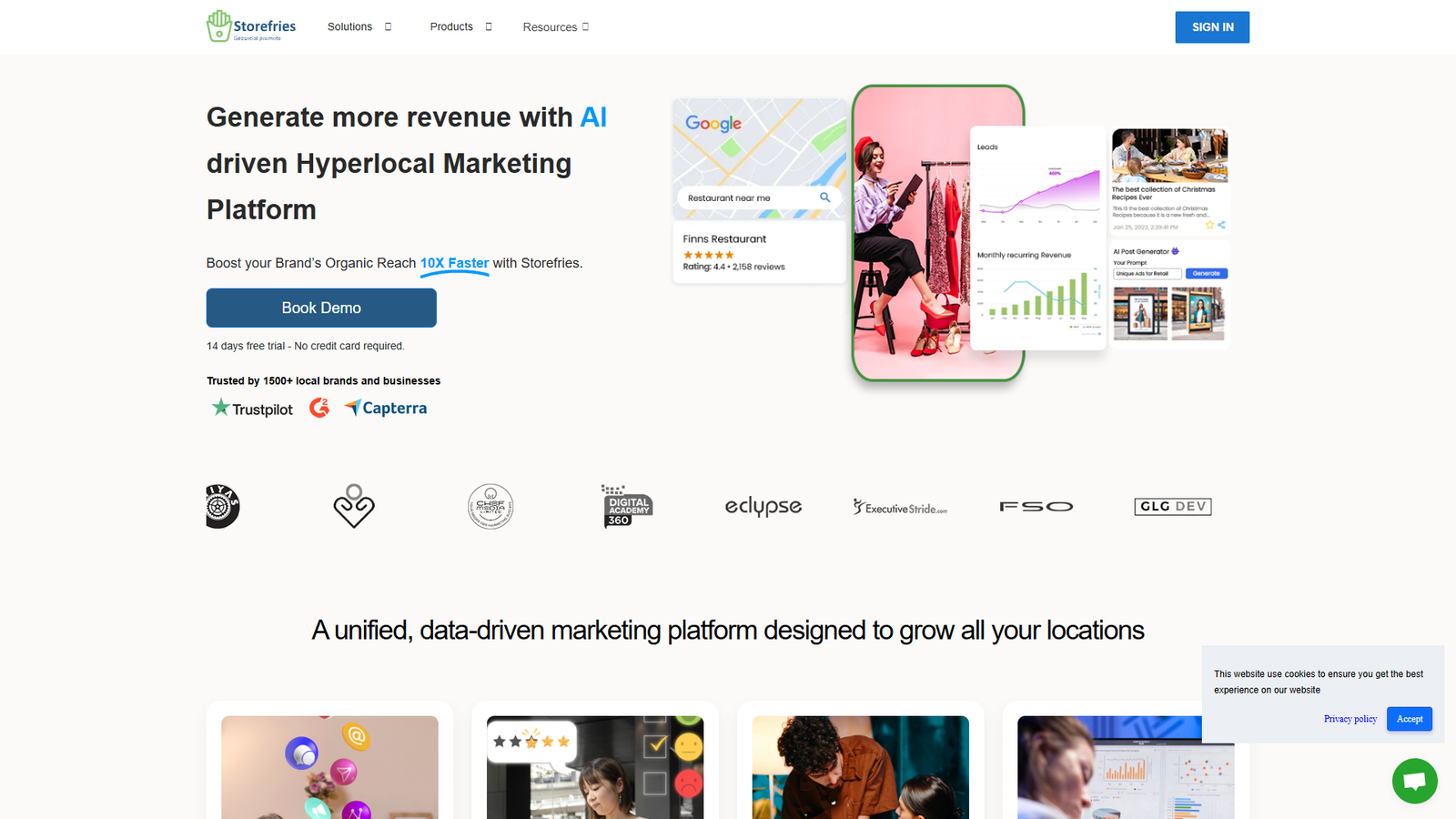 Storefries — AI-платформа для hyperlocal-маркетинга, которая помогает локальным брендам и агентствам быстрее наращивать органический охват и выручку во всех точках присутствия.