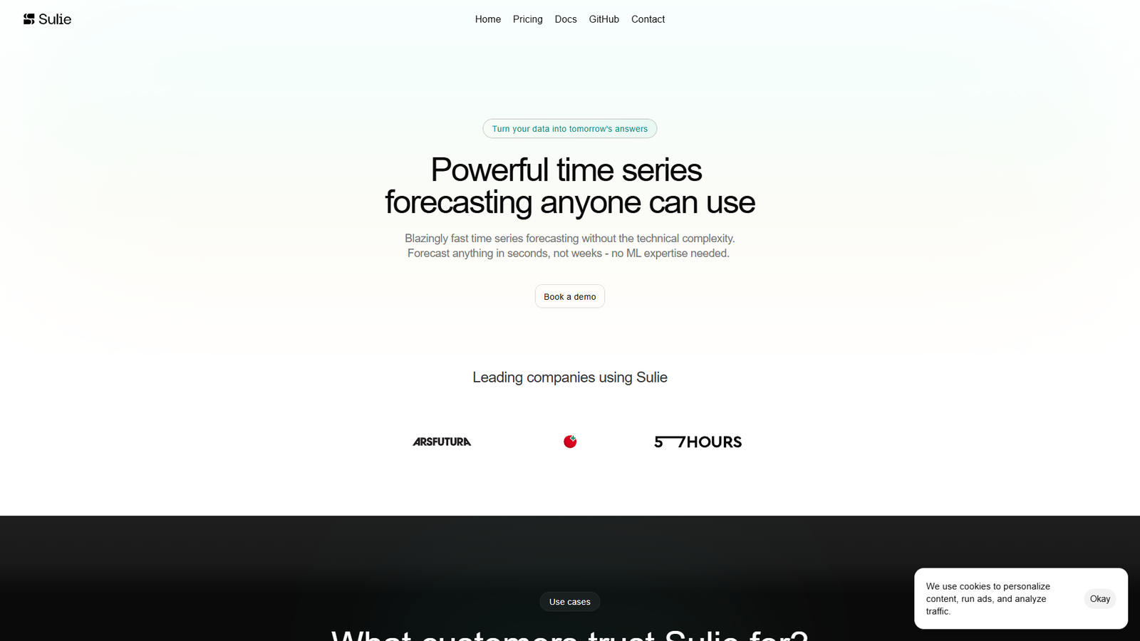 Sulie — инструмент для прогнозирования временных рядов, ориентированный на бизнес-команды без глубоких знаний в машинном обучении. Он превращает исторические данные в точные прогнозы за секунды, а не недели, снижая нагрузку на аналитиков и разработчиков.