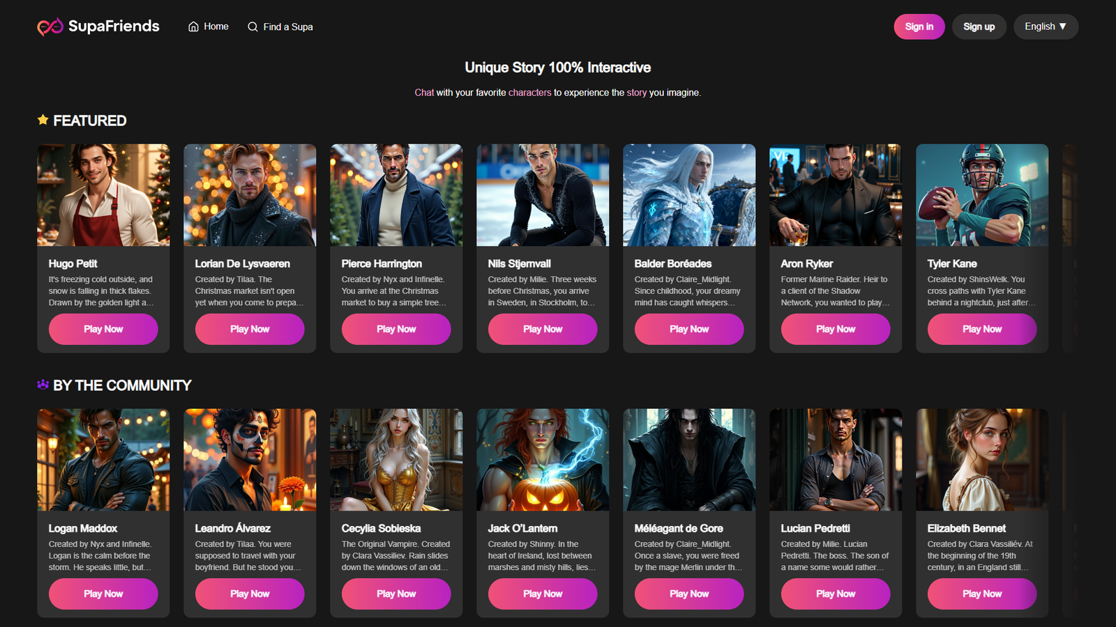 SupaFriends — это платформа для общения с романтическими AI-персонажами, созданными профессиональными авторами любовных историй. Здесь вы можете пережить глубокие виртуальные отношения и полностью интерактивные сюжеты, в которых ваш выбор действительно имеет значение.