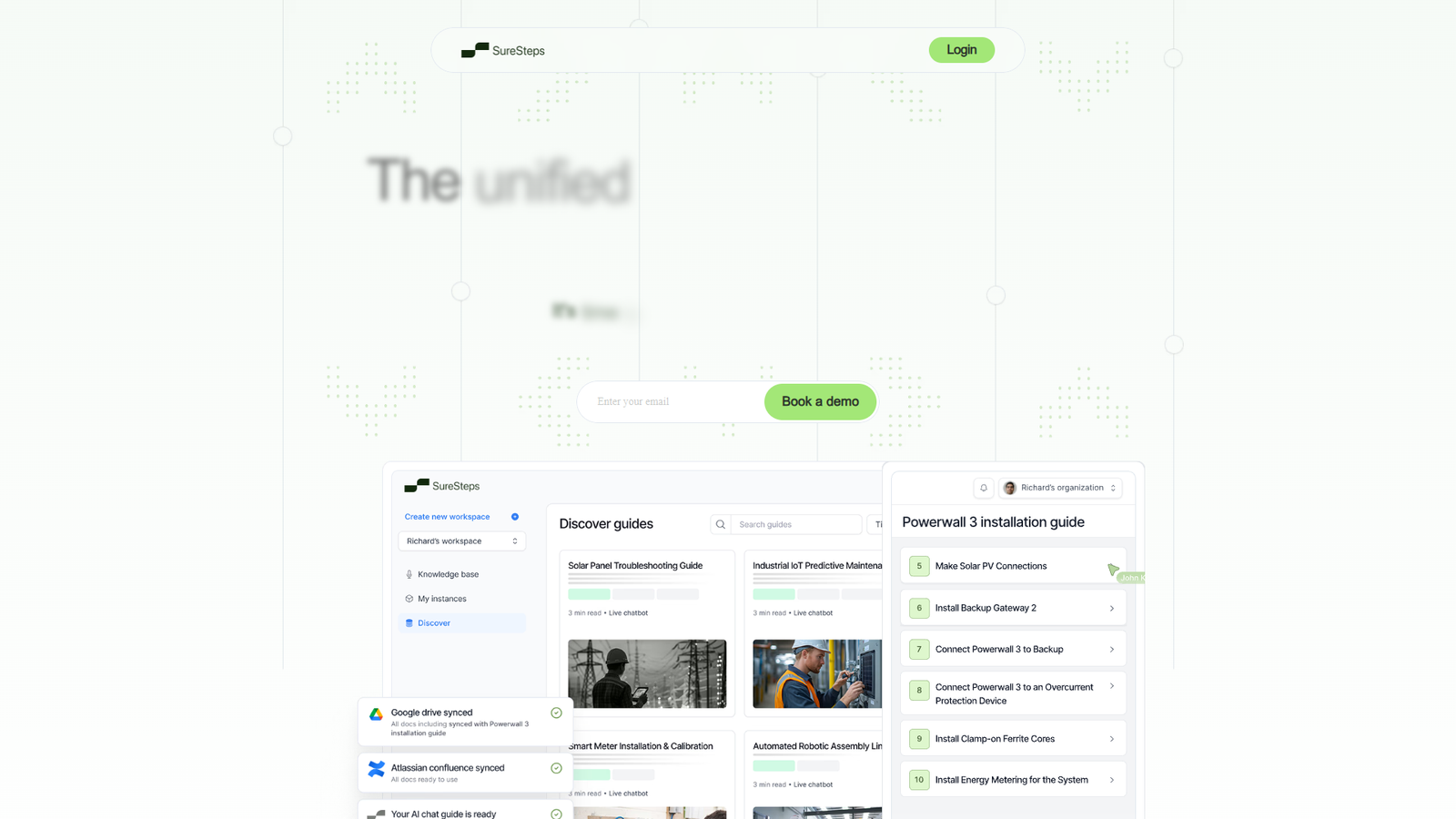 SureSteps превращает разрозненные документы и инструкции в единый цифровой плейбук для полевых команд. Вместо папок с PDF и устаревших регламентов сотрудники получают интерактивные пошаговые руководства прямо на телефоне или планшете.