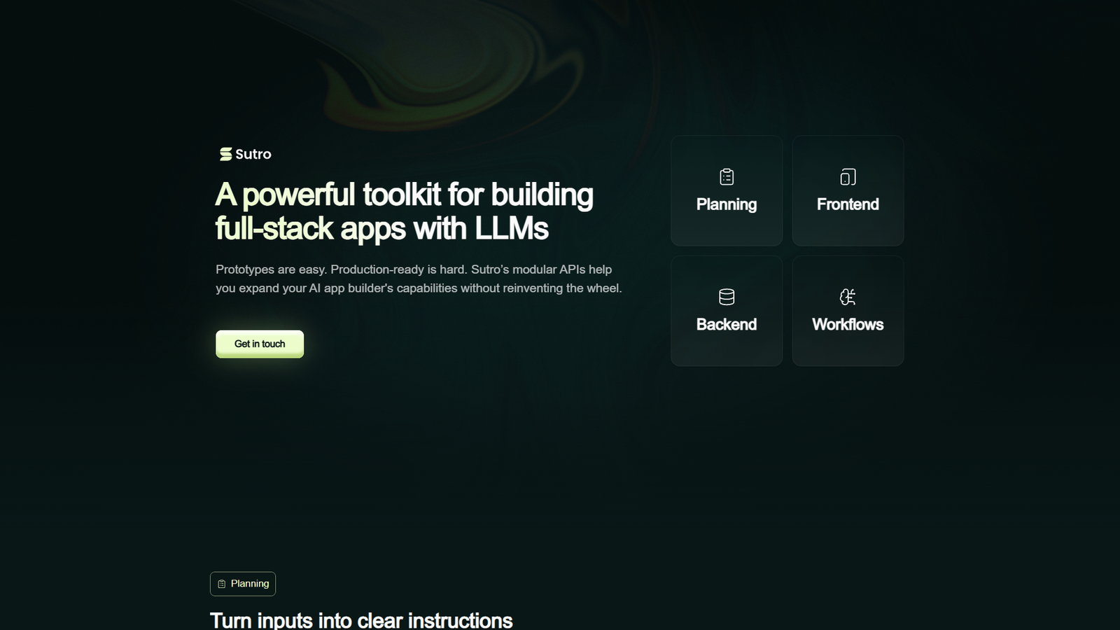 Sutro — это мощный набор инструментов для создания полноценных AI-приложений на базе LLM, ориентированный не на быстрые прототипы, а на продакшн-уровень. Сервис предоставляет модульные API для фронтенда, бэкенда, планирования и агентных workflow, позволяя расширять возможности вашего AI-конструктора без «изобретения велосипеда».