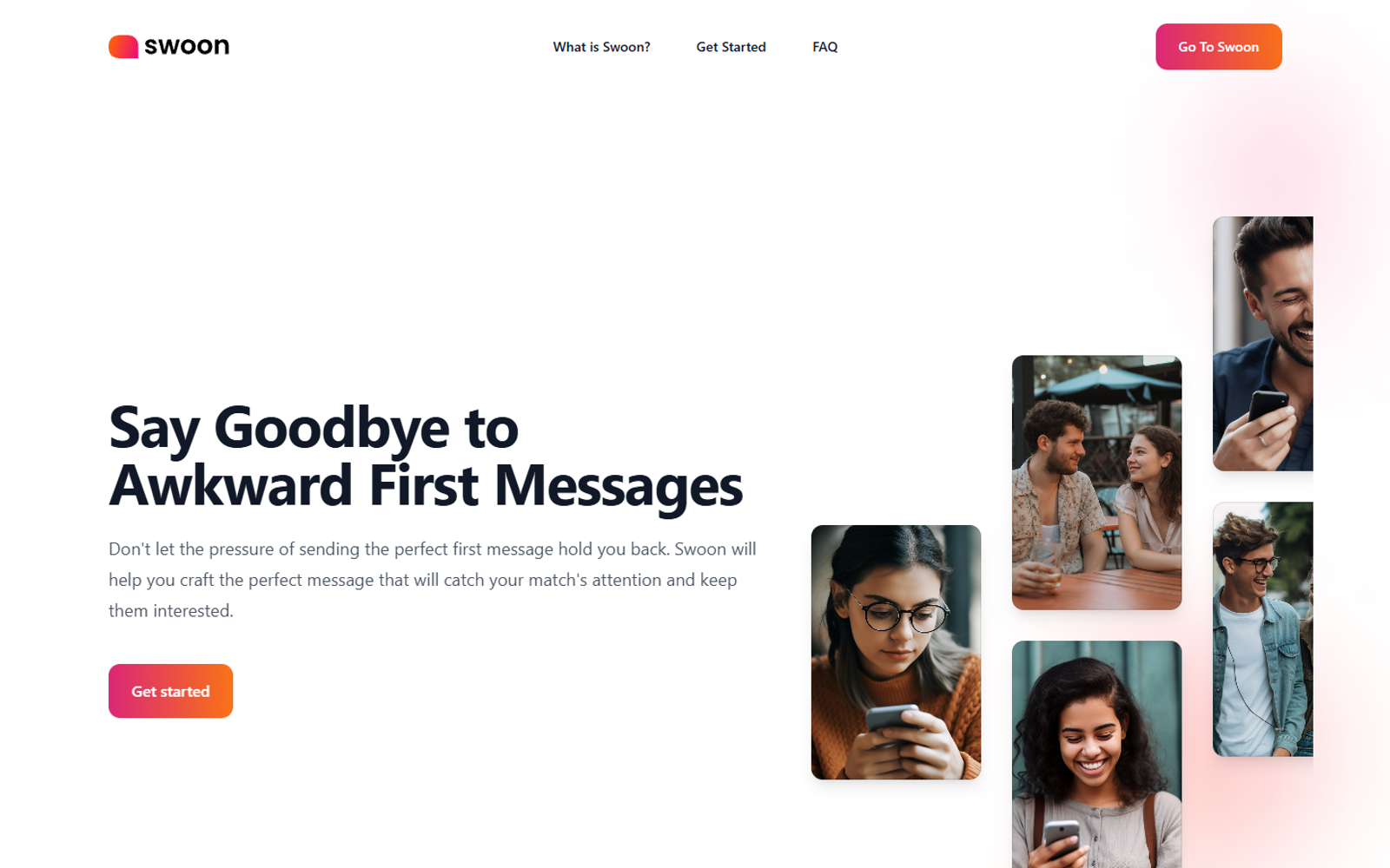 Вы показываете Swoon свои сообщения (и/или черновик первого контакта), а система подсказывает, как сделать текст естественнее, интереснее и точнее по тону. Вместо шаблонных фраз вы получаете персональные рекомендации, которые помогают удержать внимание собеседника.