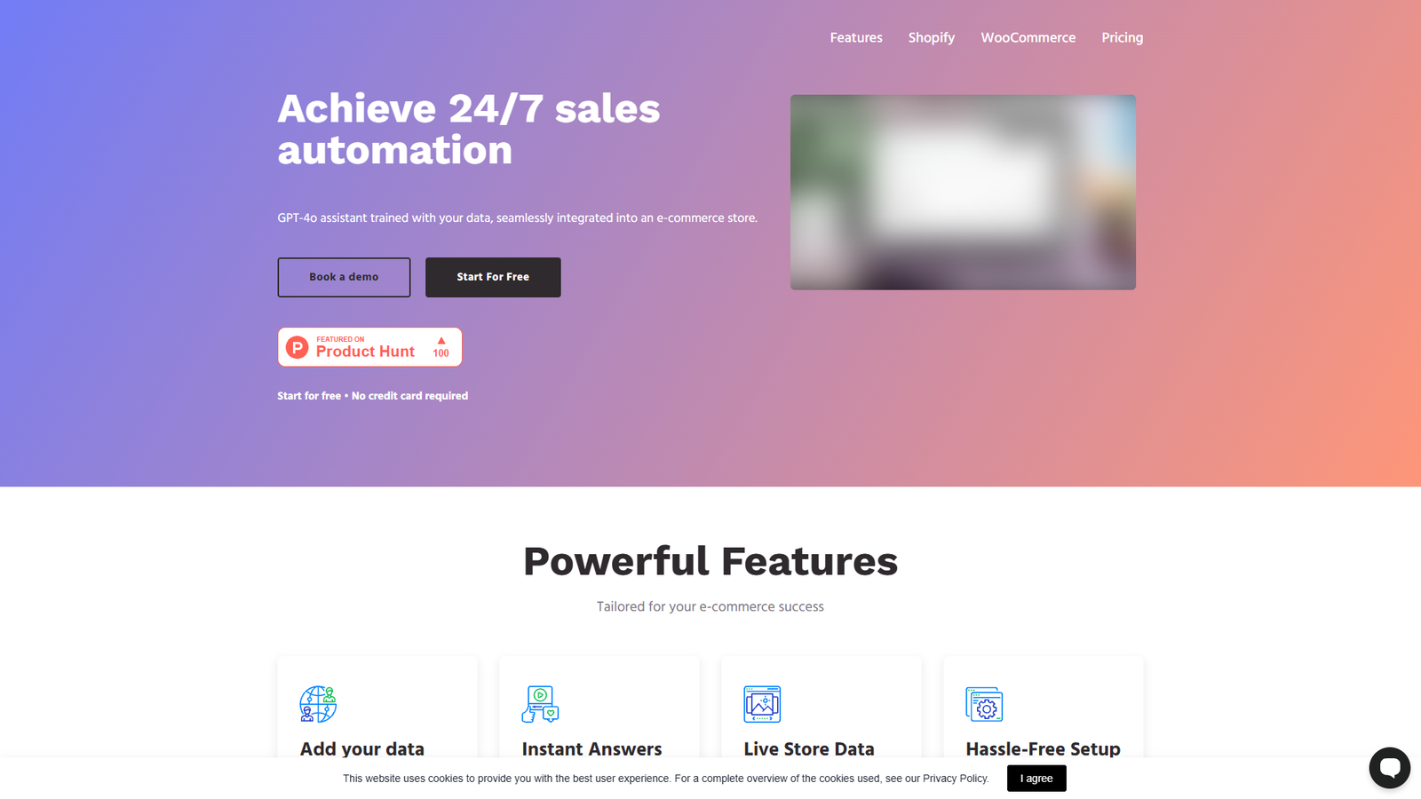 Виджет подключается к Shopify или WooCommerce через готовые интеграции. После настройки источников данных и базовых сценариев чатбот сразу начинает работать на сайте и постепенно улучшает качество ответов по мере накопления диалогов.
