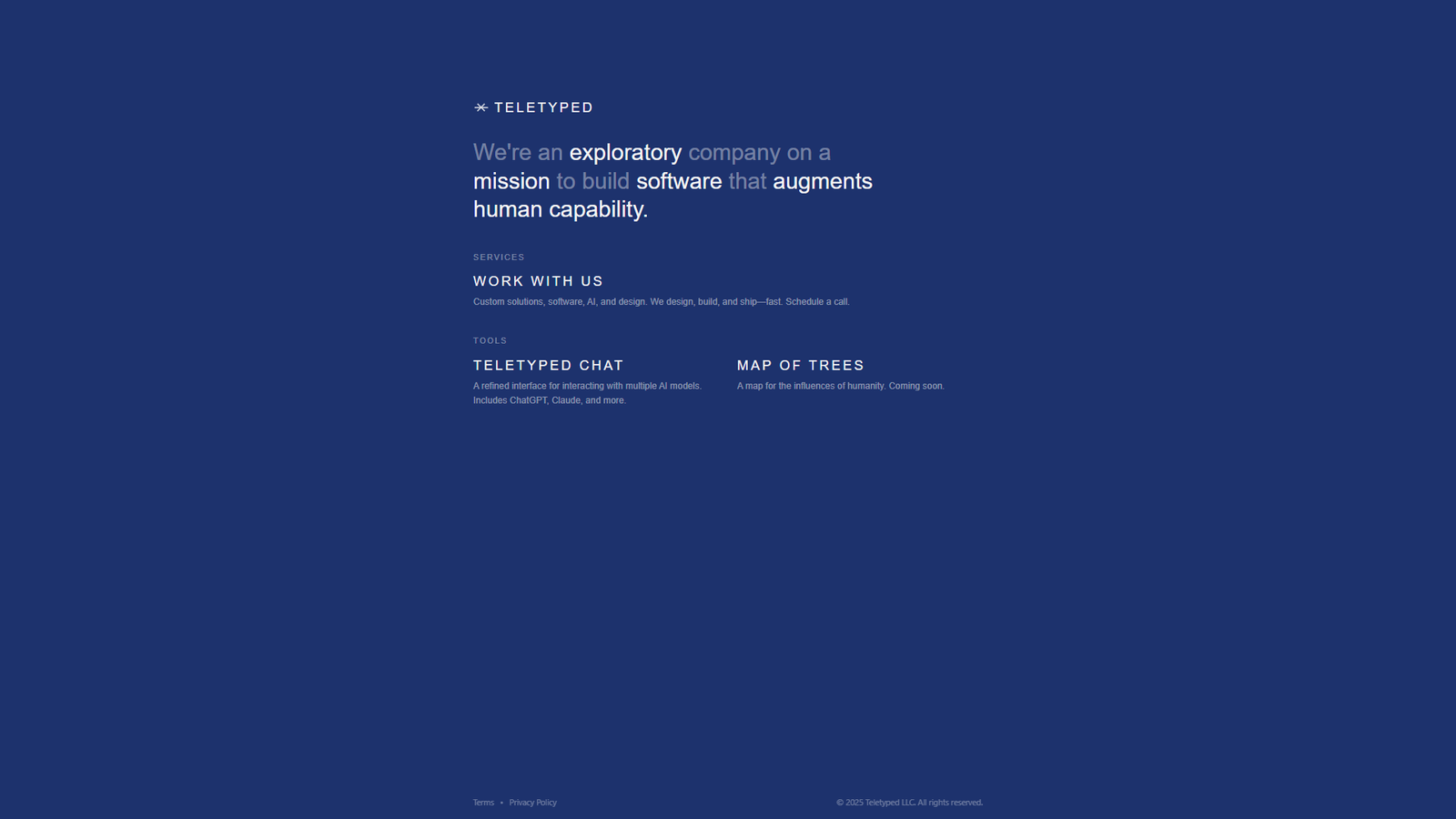Teletyped — компания, исследующая способы усиления человеческих возможностей с помощью ИИ и современного софта. В центре внимания — удобные интерфейсы для работы с несколькими моделями одновременно и кастомные решения под задачи бизнеса.