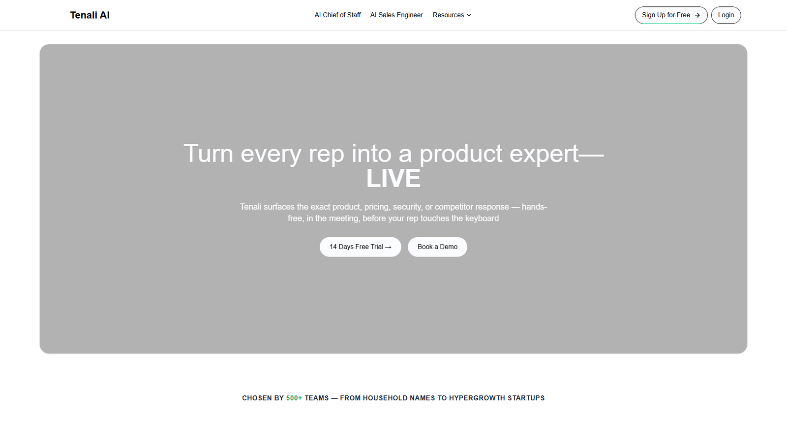 Tenali AI помогает продавцам отвечать на сложные вопросы клиентов прямо во время звонка или онлайн-встречи. Инструмент работает в реальном времени и подсказывает релевантные ответы по продукту, ценам, безопасности и конкурентам, пока менеджер общается с покупателем.