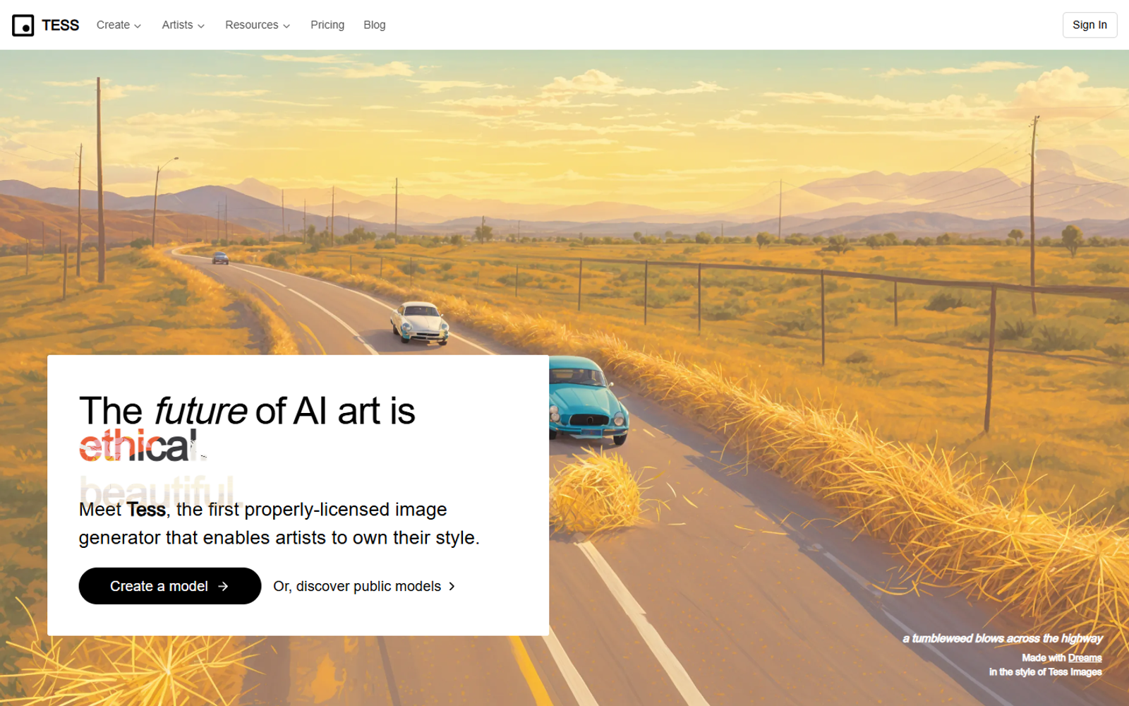 Tess — генератор изображений на основе ИИ, который изначально строится вокруг интересов художников. Каждый визуальный стиль здесь привязан к конкретному автору, а использование моделей приносит создателям прямой доход.