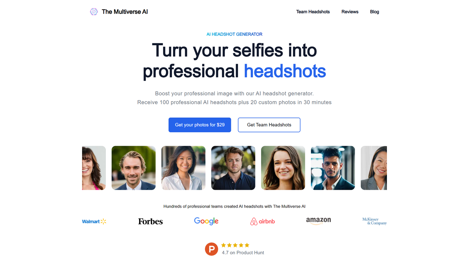 The Multiverse AI — онлайн AI headshot generator, который превращает обычные селфи в профессиональные портреты для LinkedIn и других деловых платформ. Сервис ориентирован на максимально реалистичный результат и быстрый выпуск готовых изображений.