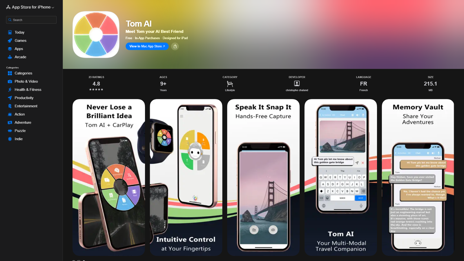 Tom AI — это голосовой ассистент и виртуальный собеседник на базе GPT, созданный как «лучший друг» в вашем iPhone, iPad или Apple Watch. Приложение ориентировано на естественное голосовое общение и помогает в повседневных задачах, от простых разговоров до мозговых штурмов и планирования.