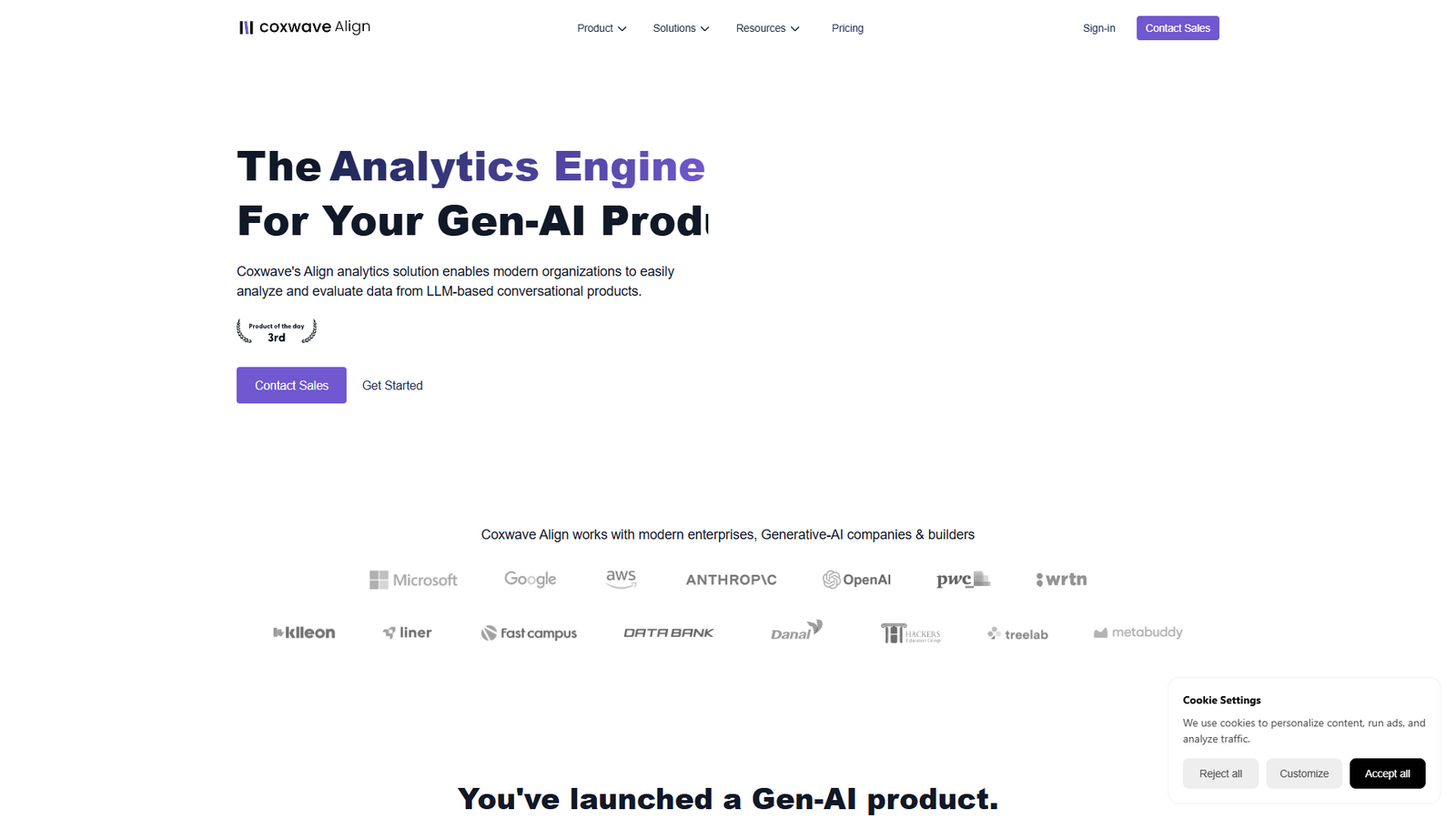 Coxwave Align — аналитический движок для продуктов на основе генеративного ИИ и LLM-чатботов. Инструмент собирает и структурирует диалоги пользователей с моделью, превращая их в метрики, дашборды и понятные отчеты.