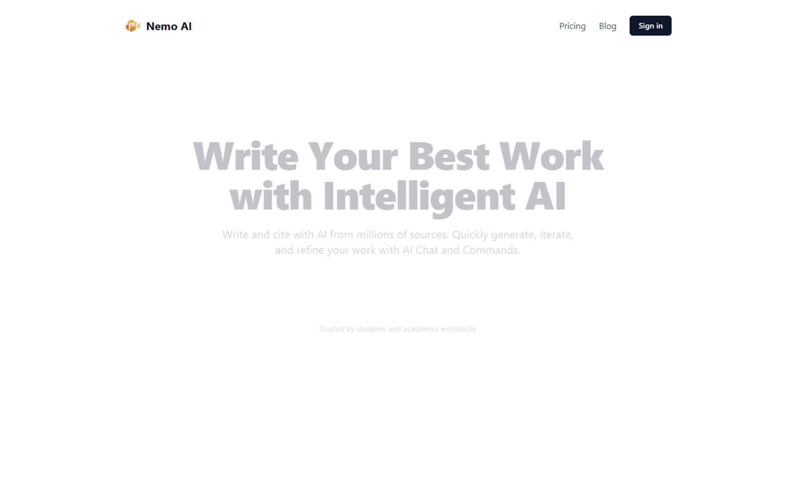 Nemo AI — интеллектуальный помощник для эссе, конспектов и академического письма. Инструмент ориентирован на студентов, исследователей и всех, кто регулярно работает с текстами и источниками.