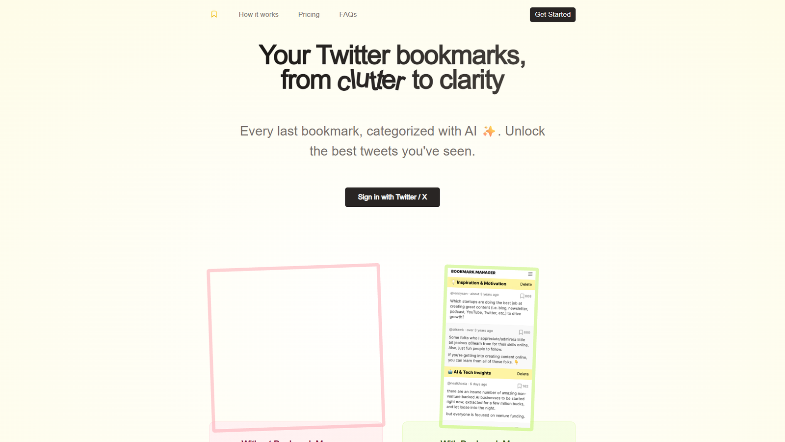 Bookmarks Manager наводит порядок в закладках Twitter / X с помощью GPT‑4. Инструмент импортирует сохранённые твиты, автоматически распределяет их по темам и даёт удобный поиск по содержимому.