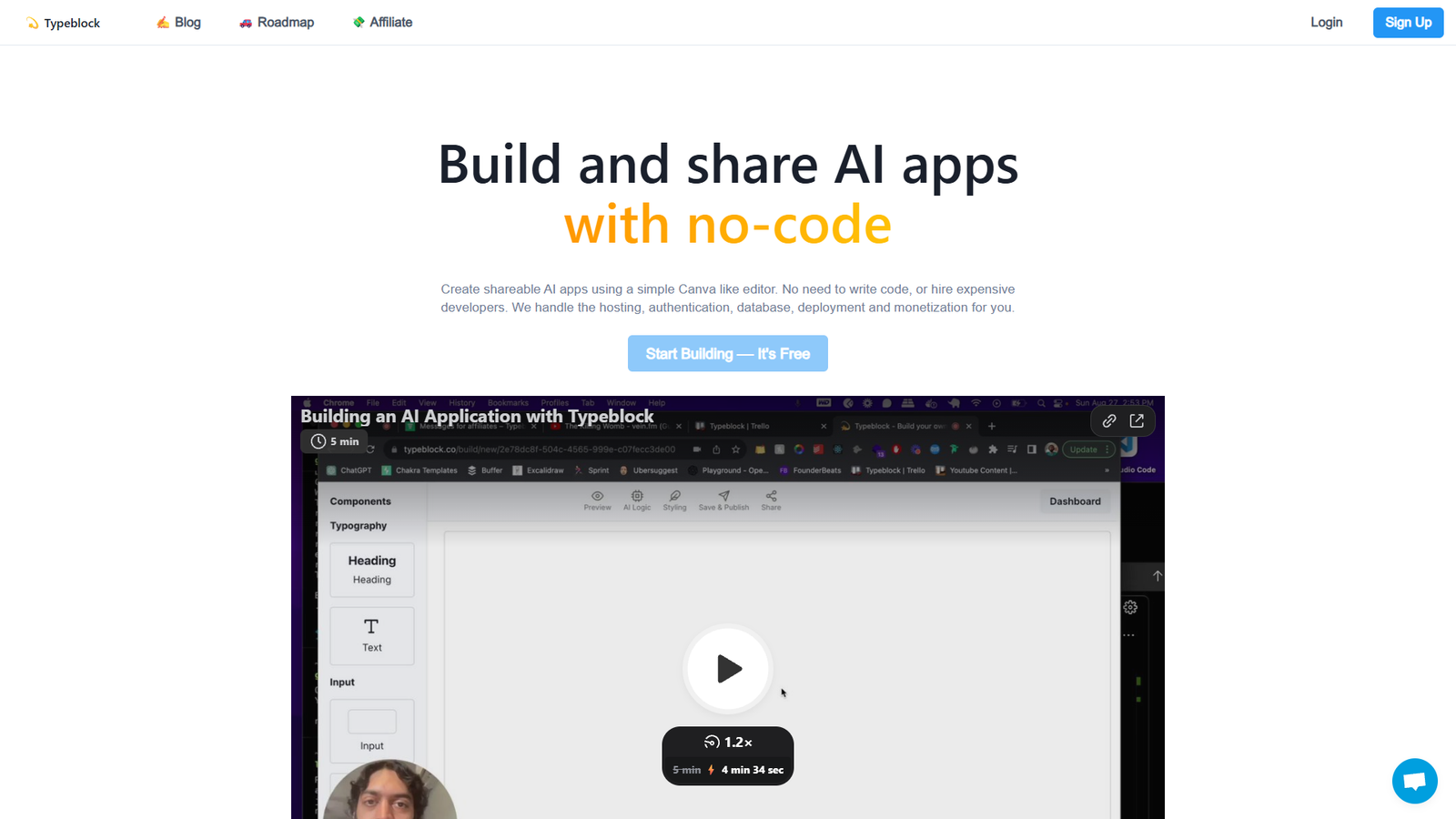 Typeblock — это no-code платформа для создания и запуска AI‑приложений за считанные минуты. Сервис позволяет собирать приложения в визуальном редакторе по принципу Canva: вы просто настраиваете блоки, тексты и логику, а вся техническая часть остаётся «под капотом».